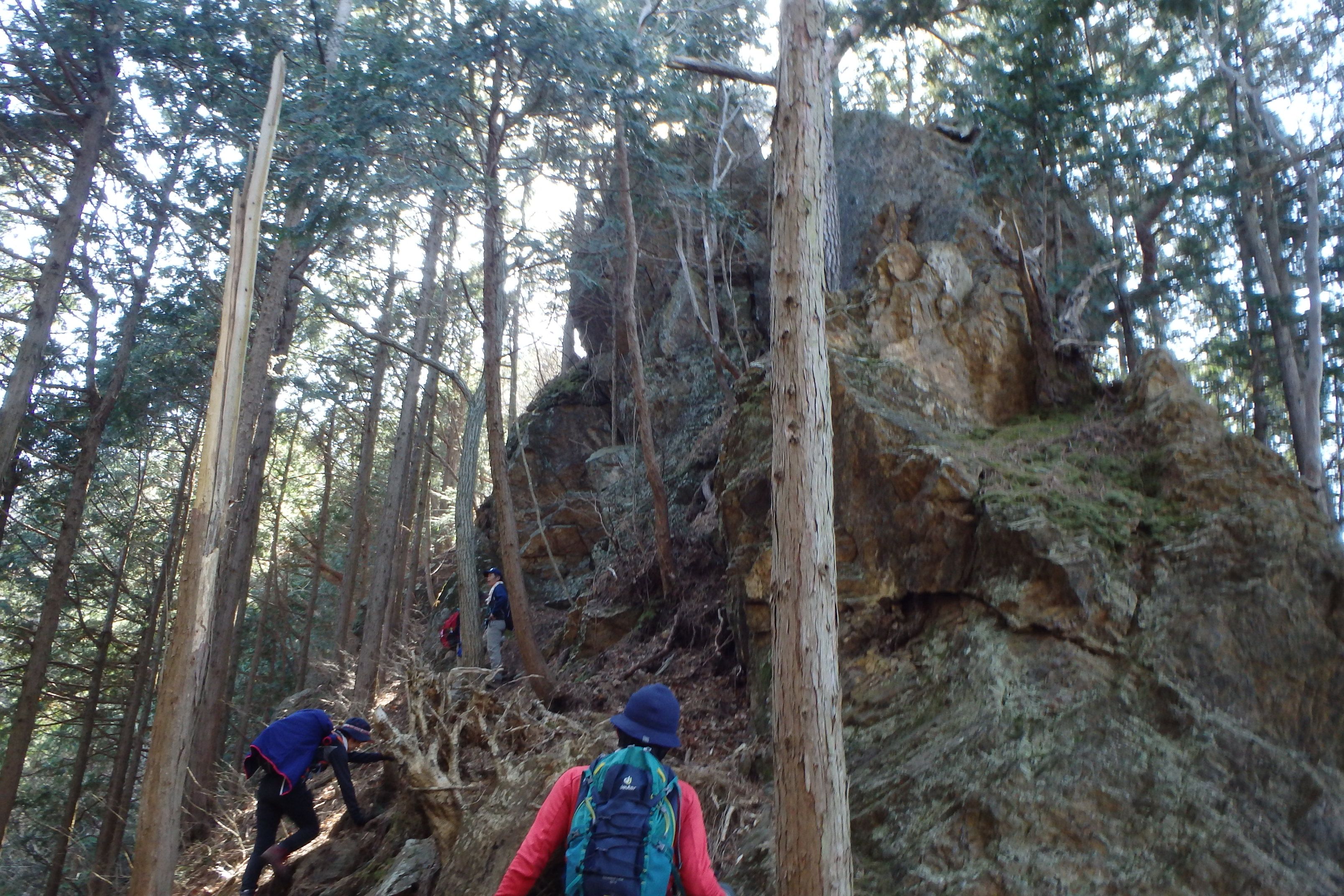 尾根に出て一休み、そこから少し登った先が展望の良い大岩でした。