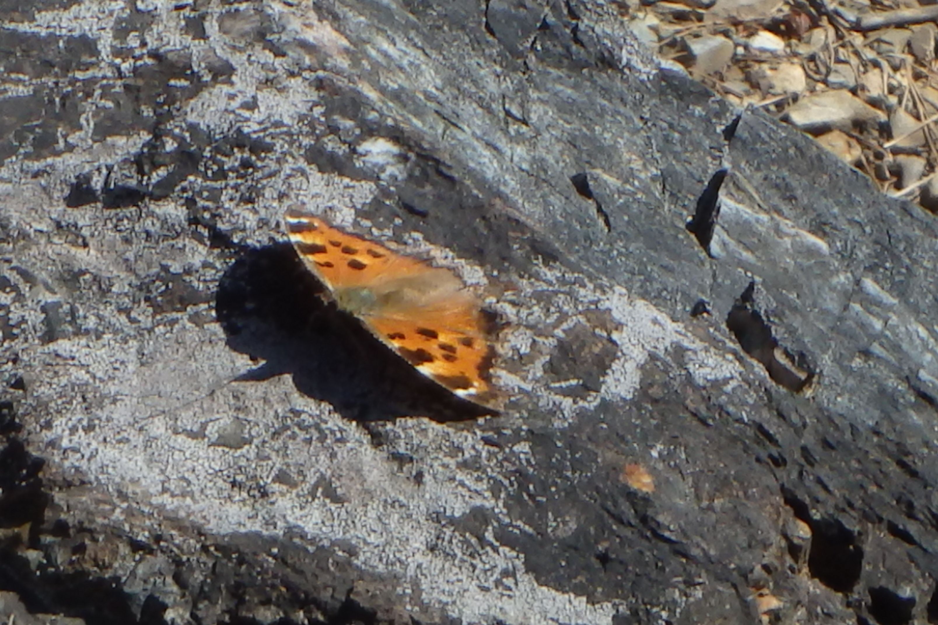 暖かさに誘われたかのように、蝶々が岩にとまっていました。