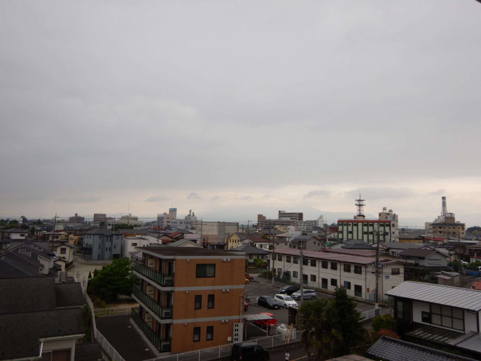 栃木北部の当地は厚い雲で山の稜線が微かに見える程度です。