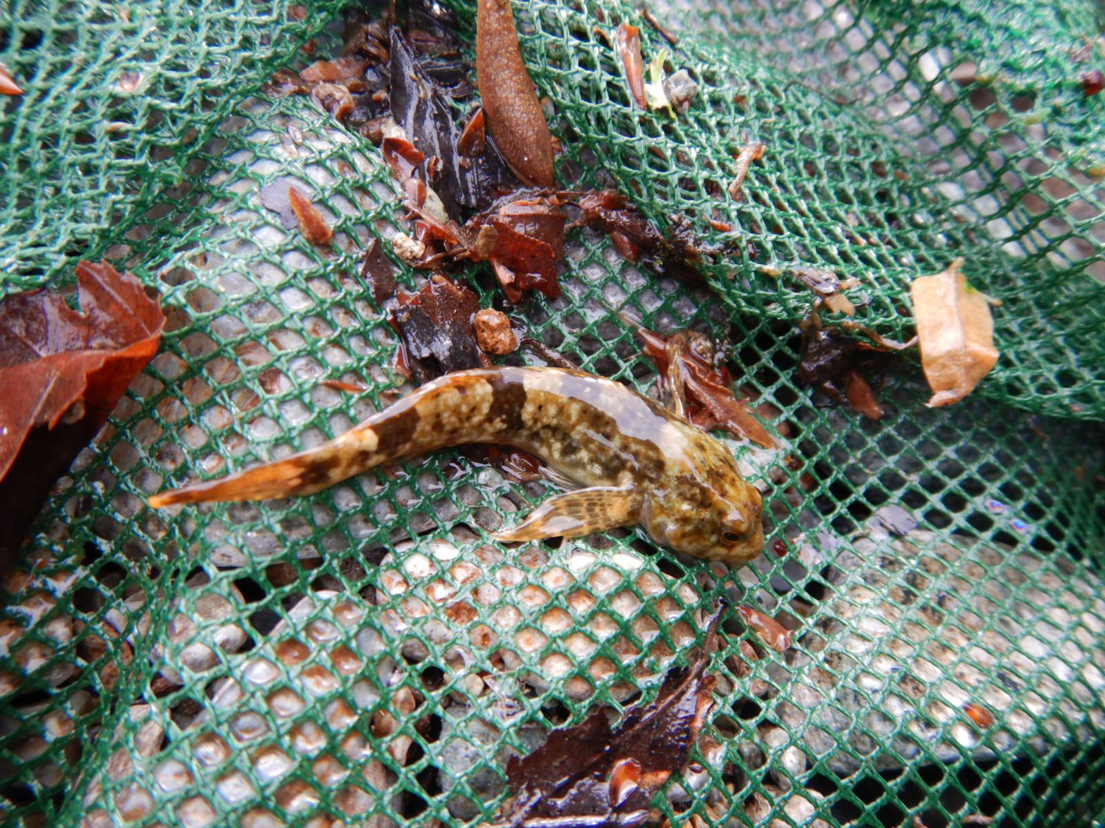川虫捕りをしているとしていると今日もカジカが網に入りました。