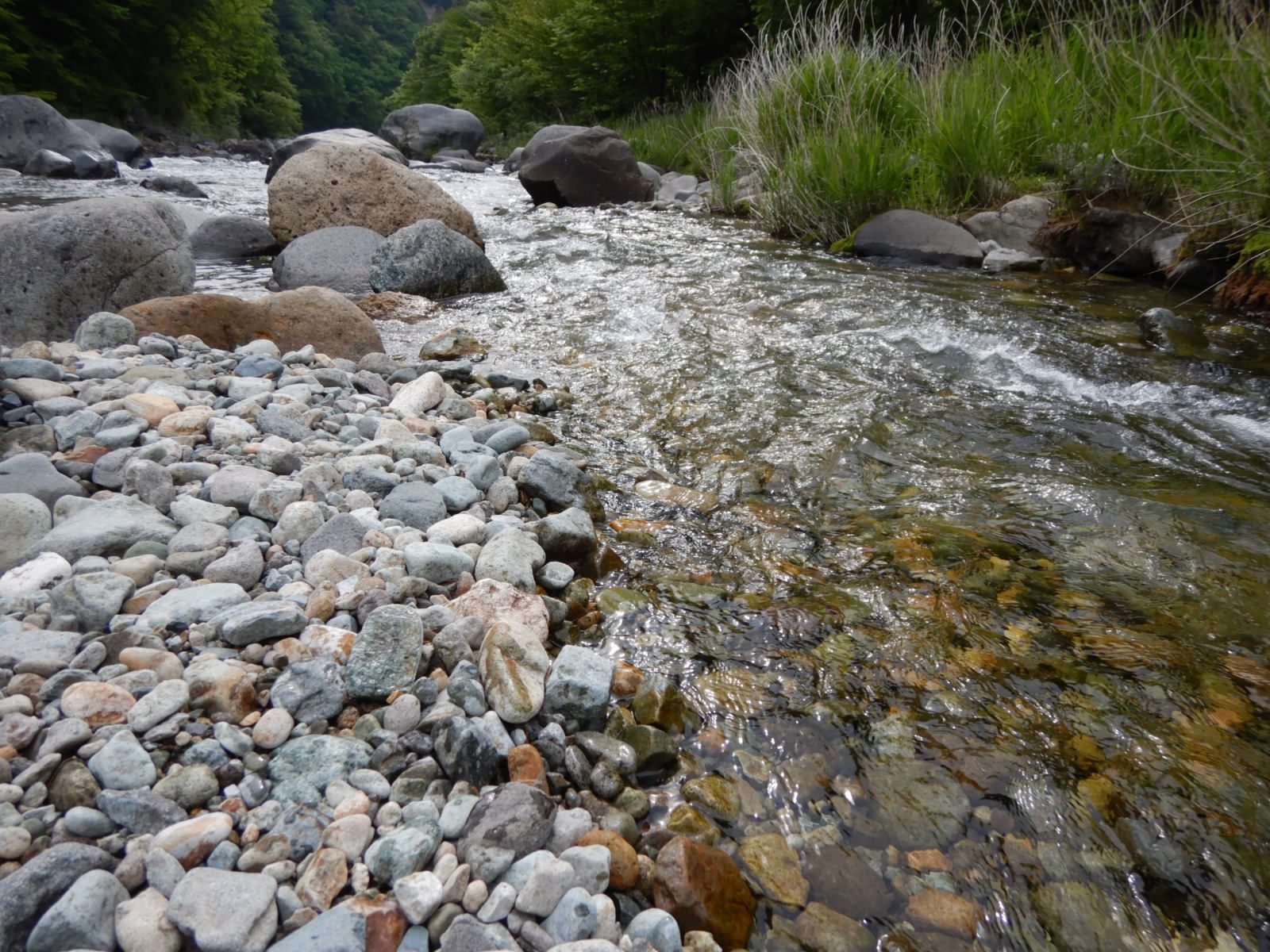 私も、全くアタリが無いので下流に戻りながら竿を出しました。
