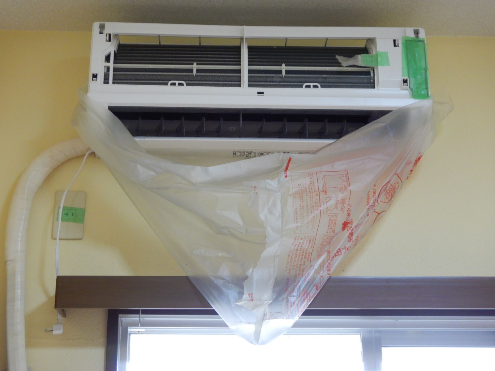 コンセントはもちろん電気部分を保護し、十分な換気をしてからエアコン掃除用の洗浄スプレーを噴射しました。