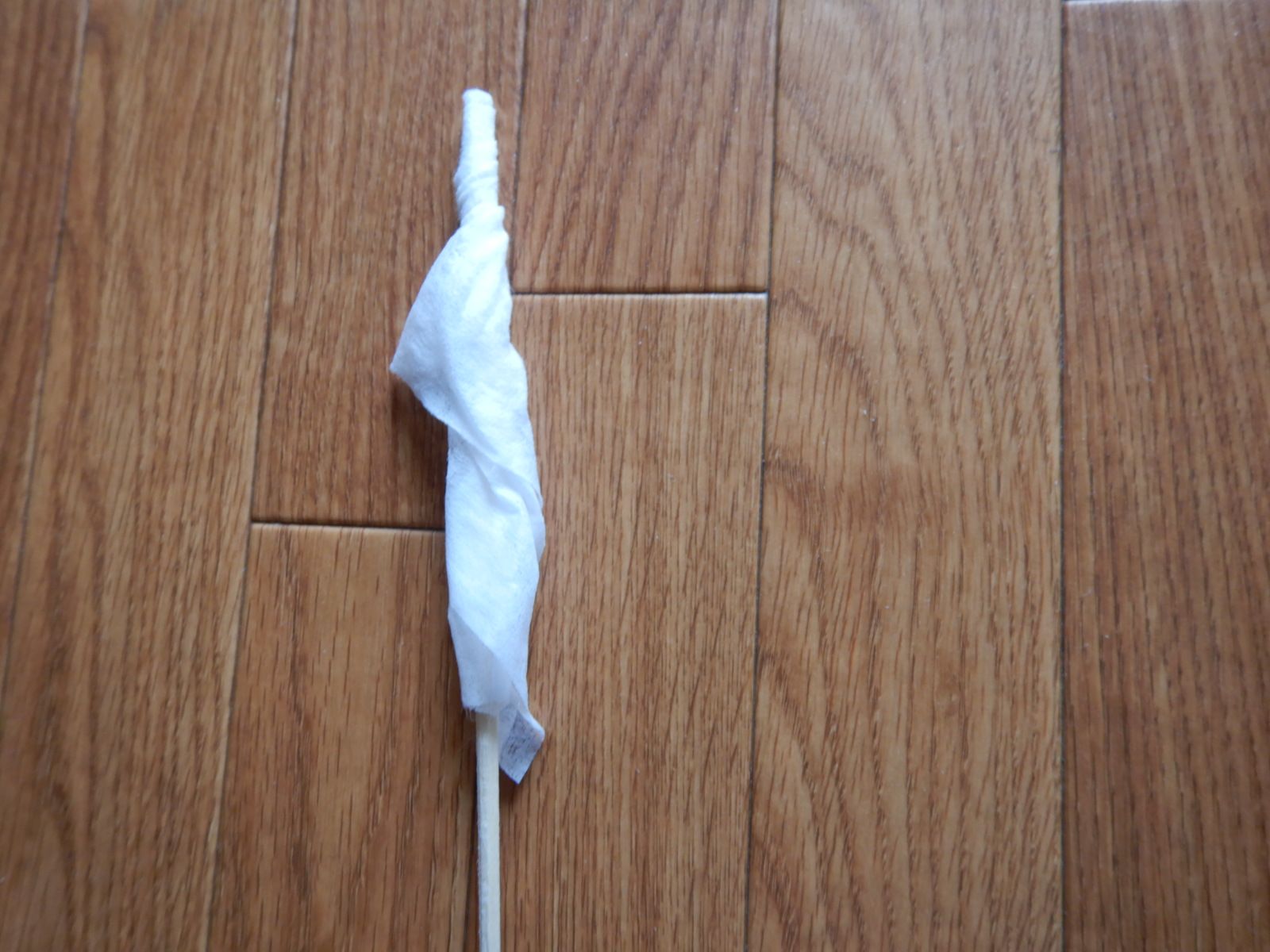 割りばしを使いやすく削り、ファンの汚れを取る道具を作りウエットティッシュを巻きつけました。
