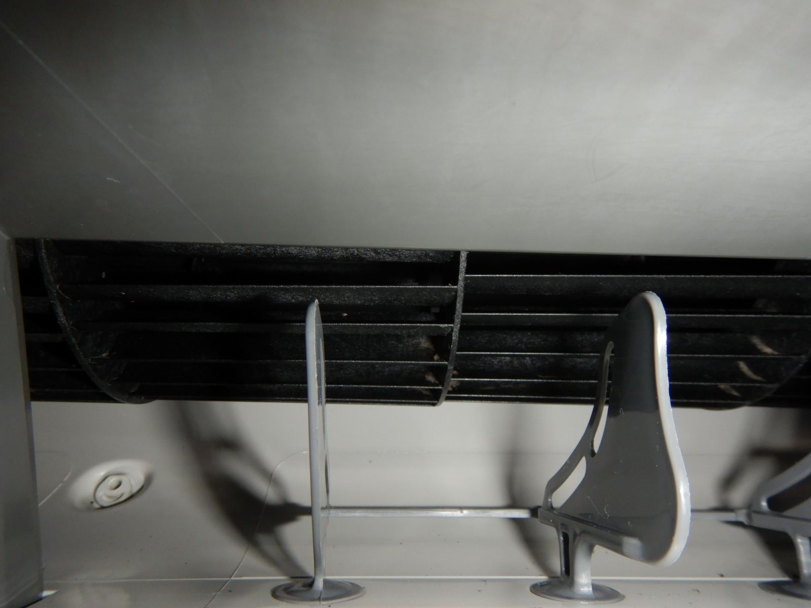 フラップを外した奥に、送風ファンにカビや汚れがこびりついているのが見えます。