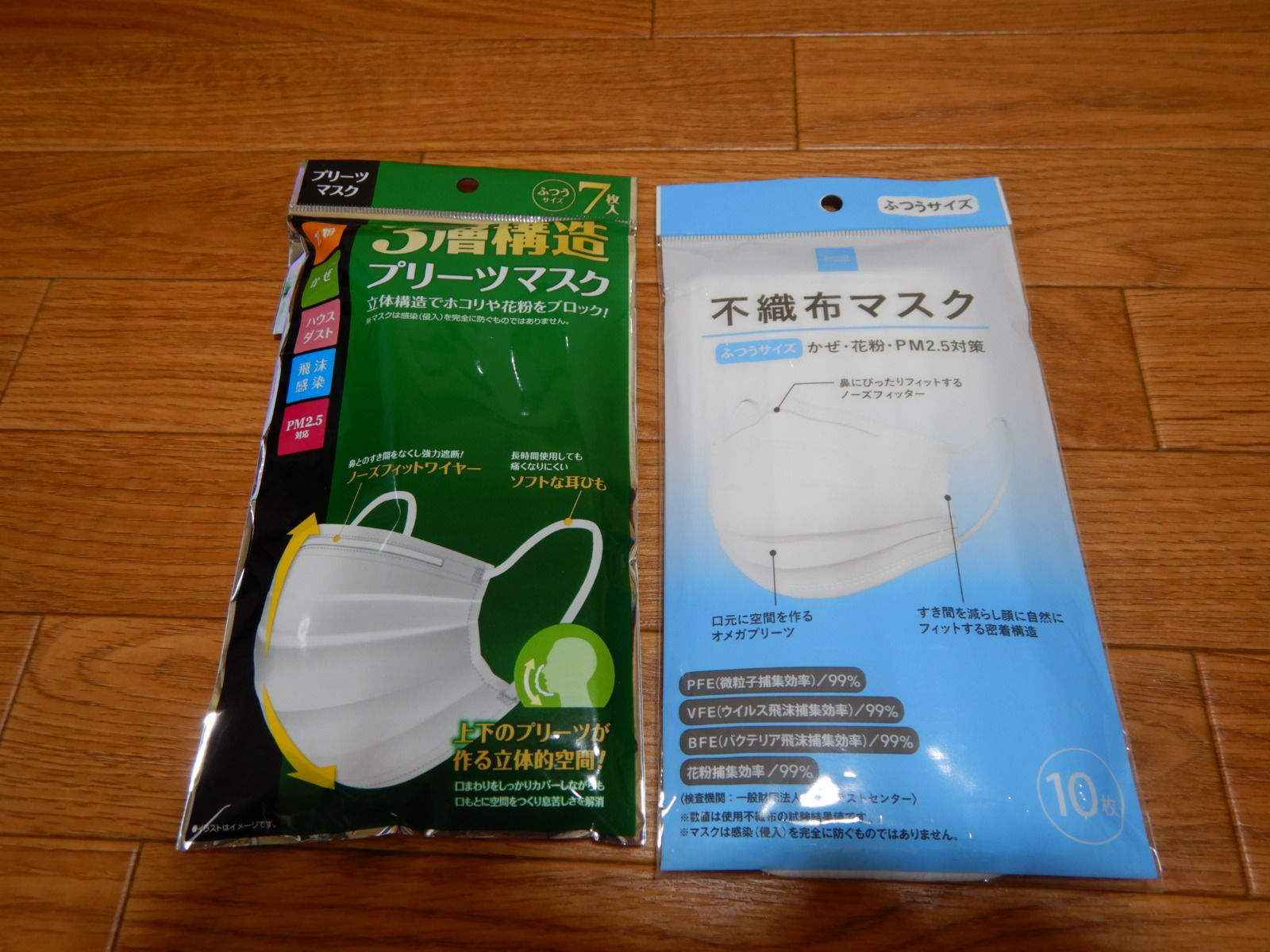 不織布の一般的なマスクと並べてみました。