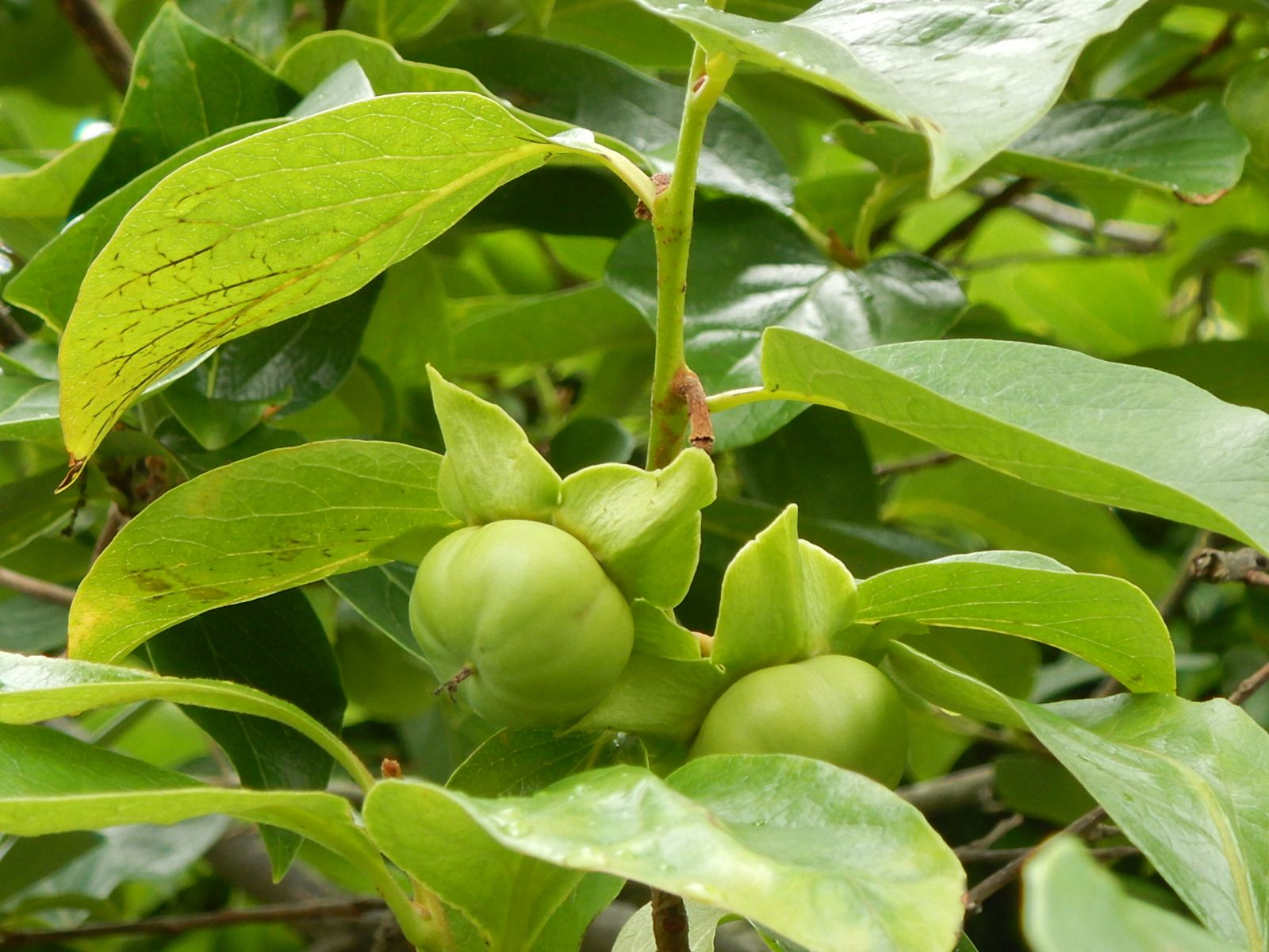 100円硬貨ほどの大きさの青い柿の実、