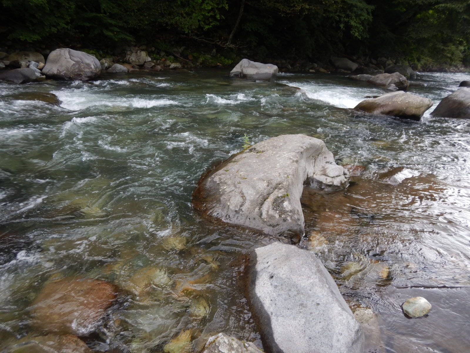 5月に尺イワナの出たポイントを丁寧に探りましたが、小さなイワナさえ出ませんでした。