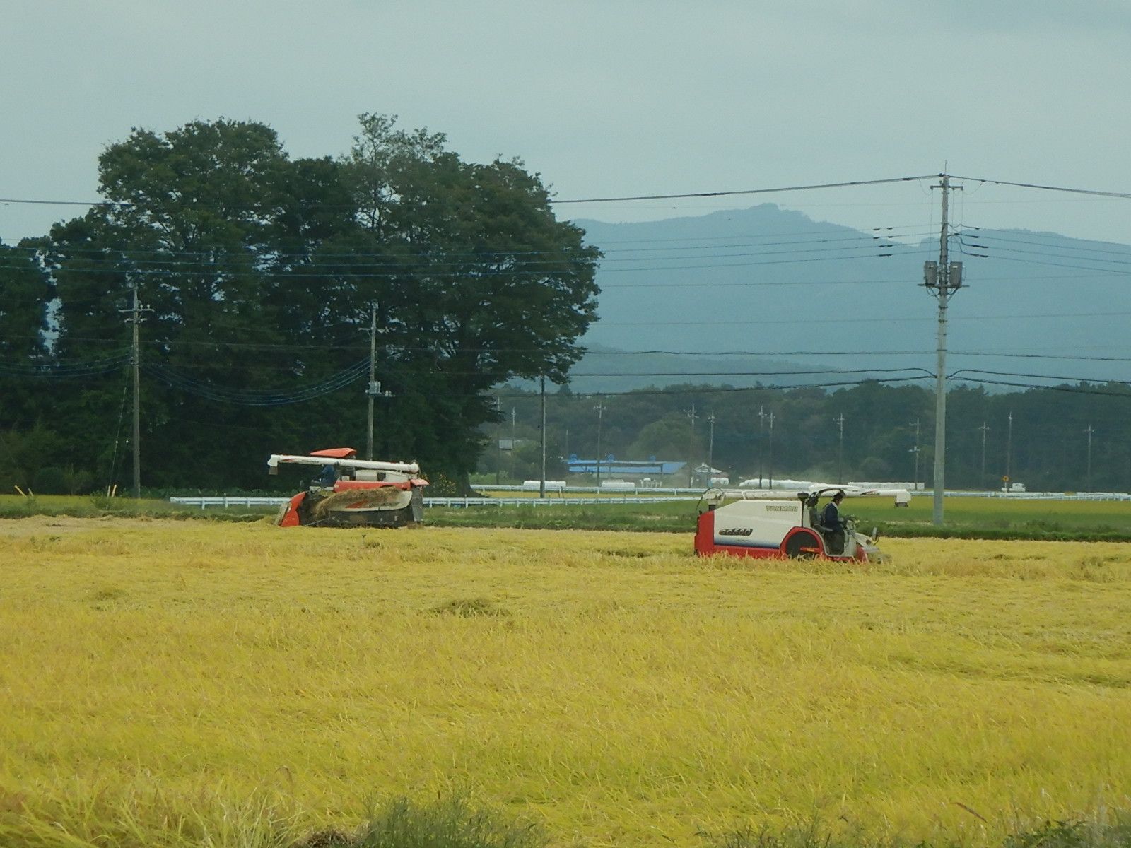 これから稲刈りは最盛期を迎えるようで、2台のコンバインがせわしなく動いていました。