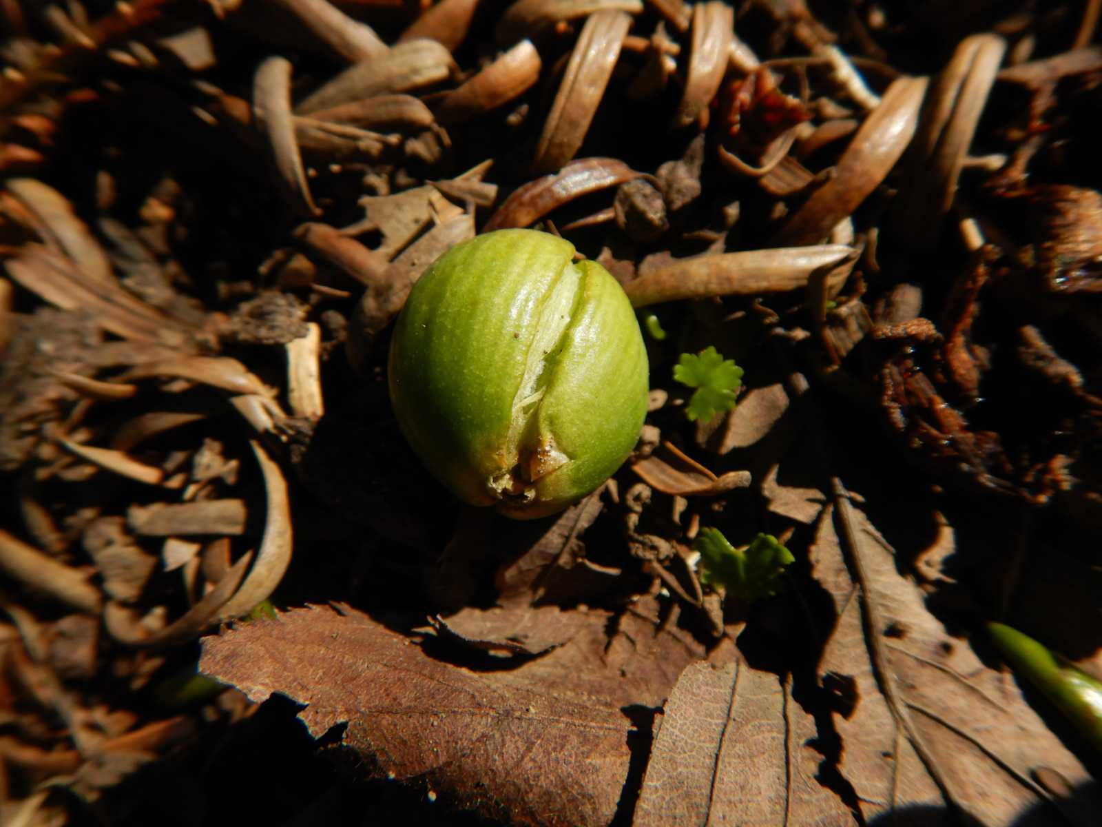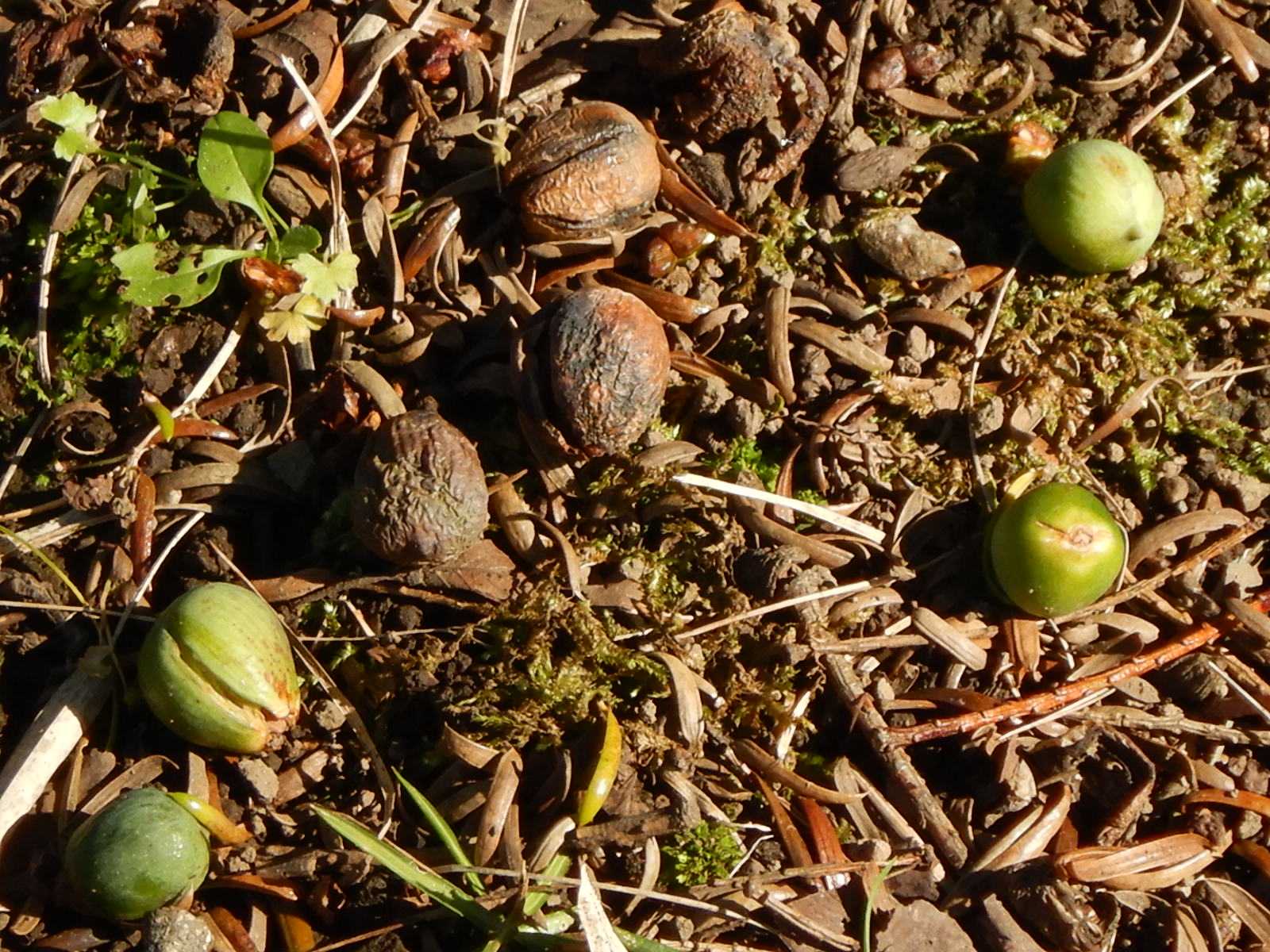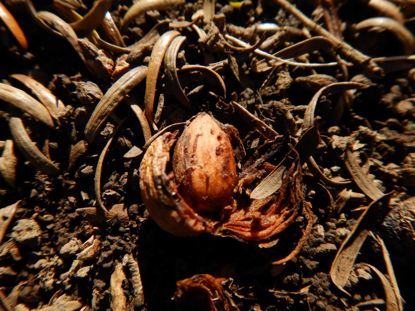 去年の実、アーモンドのような殻の中の種は食べられますが、渋皮を取り除くのが面倒なので拾う人もいないようです。