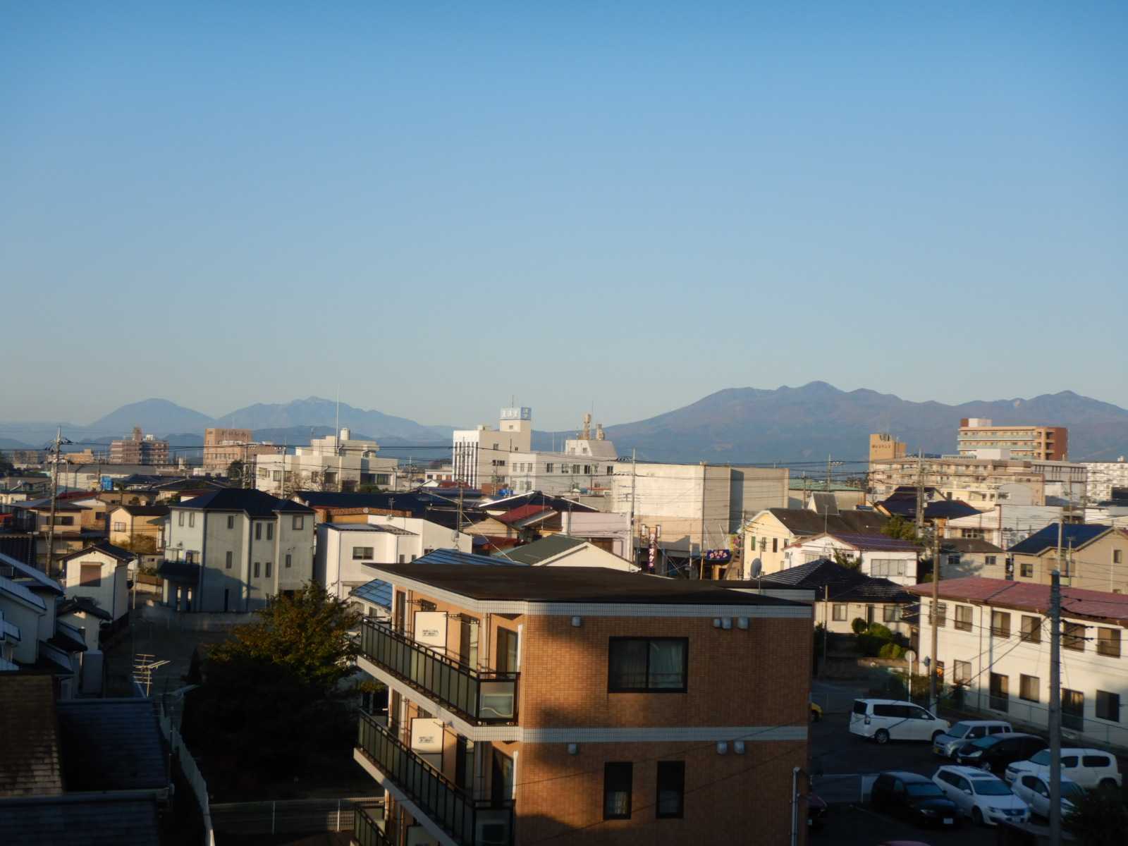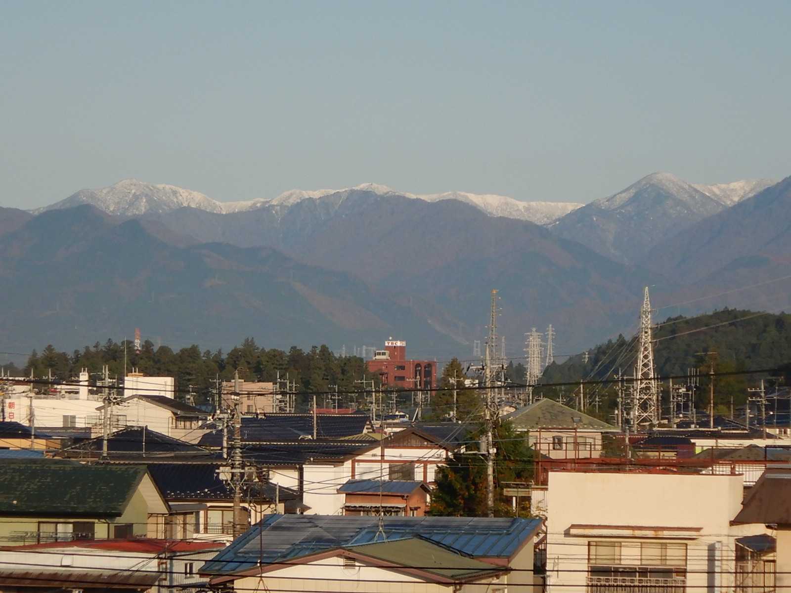 白い稜線が県境の尾根、山の向こうは福島県の会津地方です。