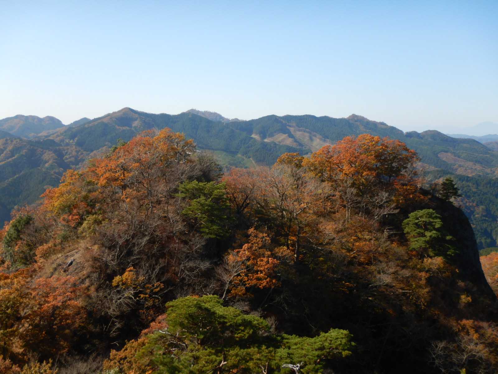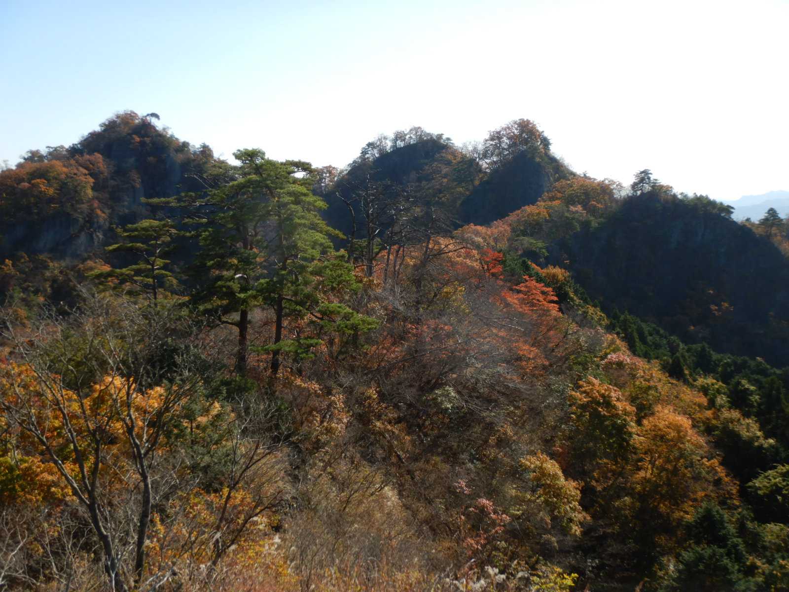 Ⅱ峰を回り込んでⅢ峰との間を急下降します。谷のモミジの色づきはまだ先のようでした。