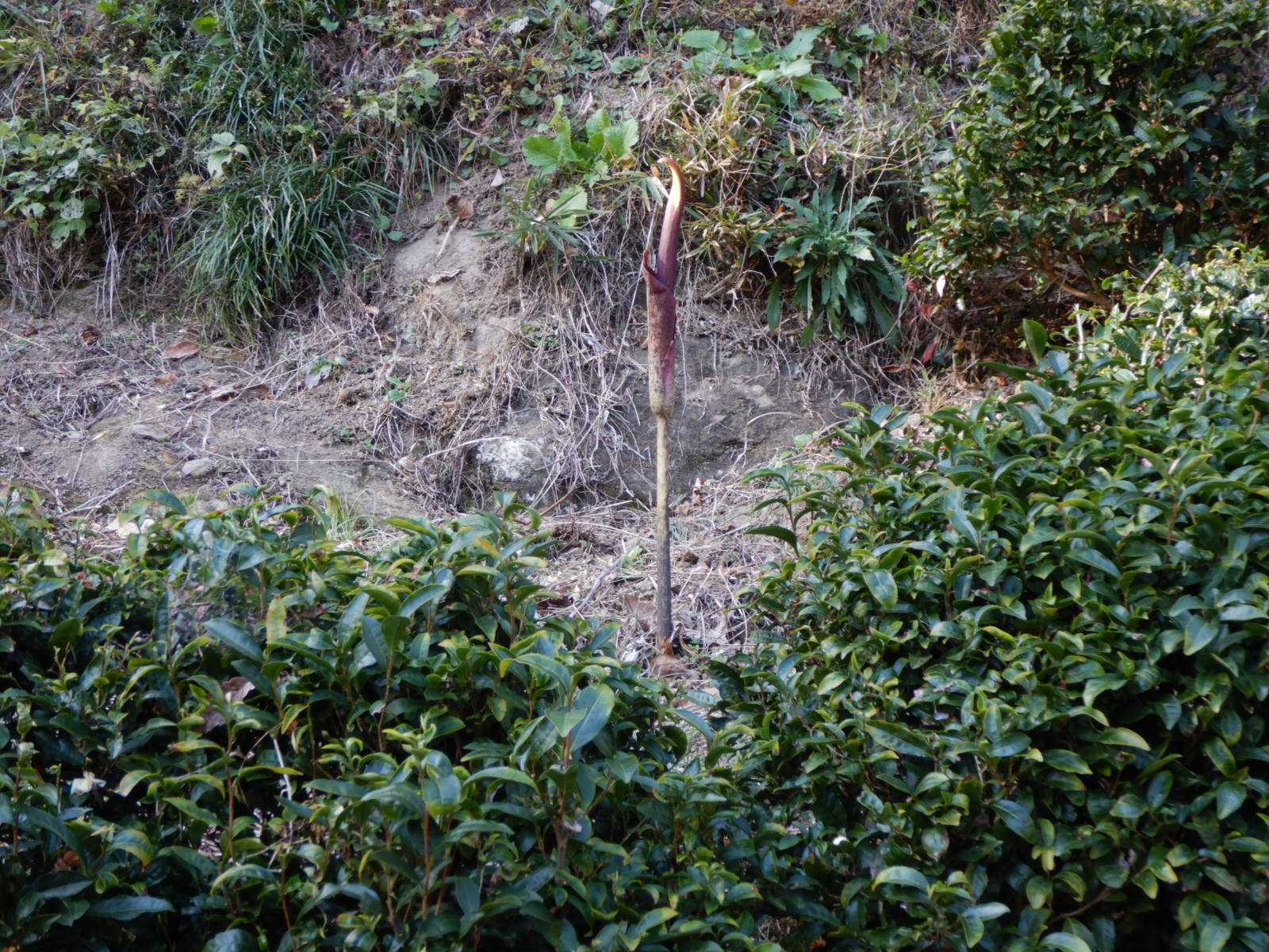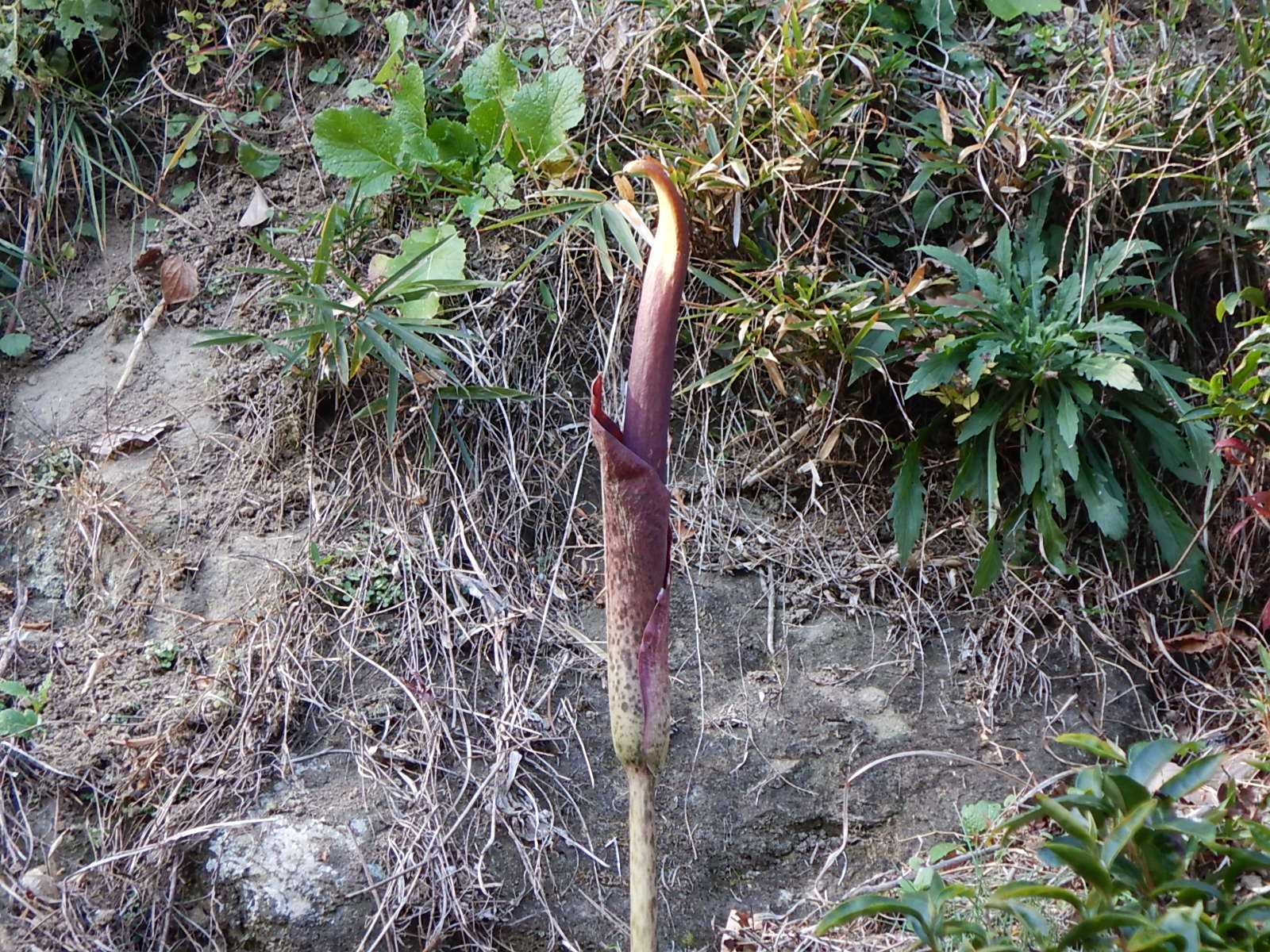 調べてみるとコンニャクの花は初夏に咲くようですが、11月の下旬に咲いたのはどういうことなのでしょう。