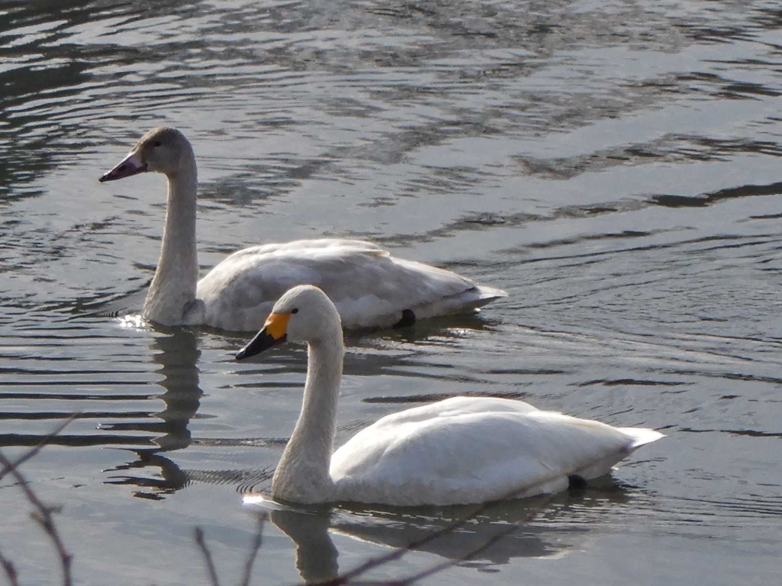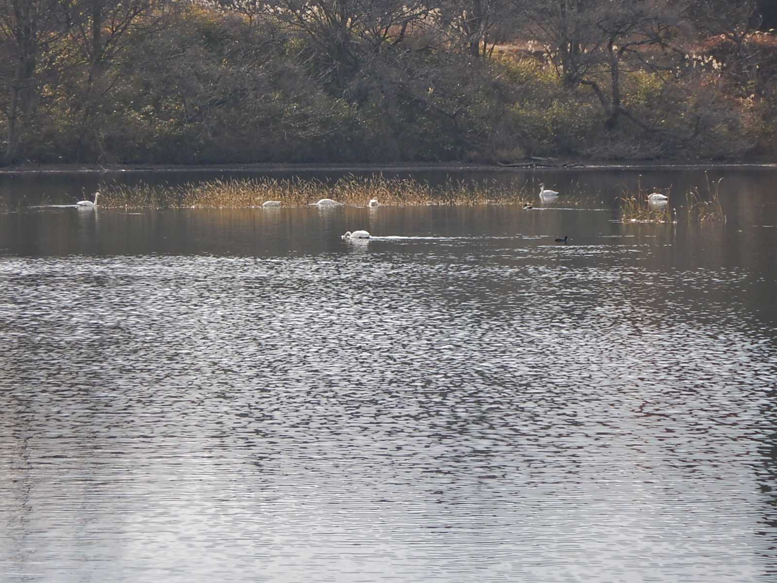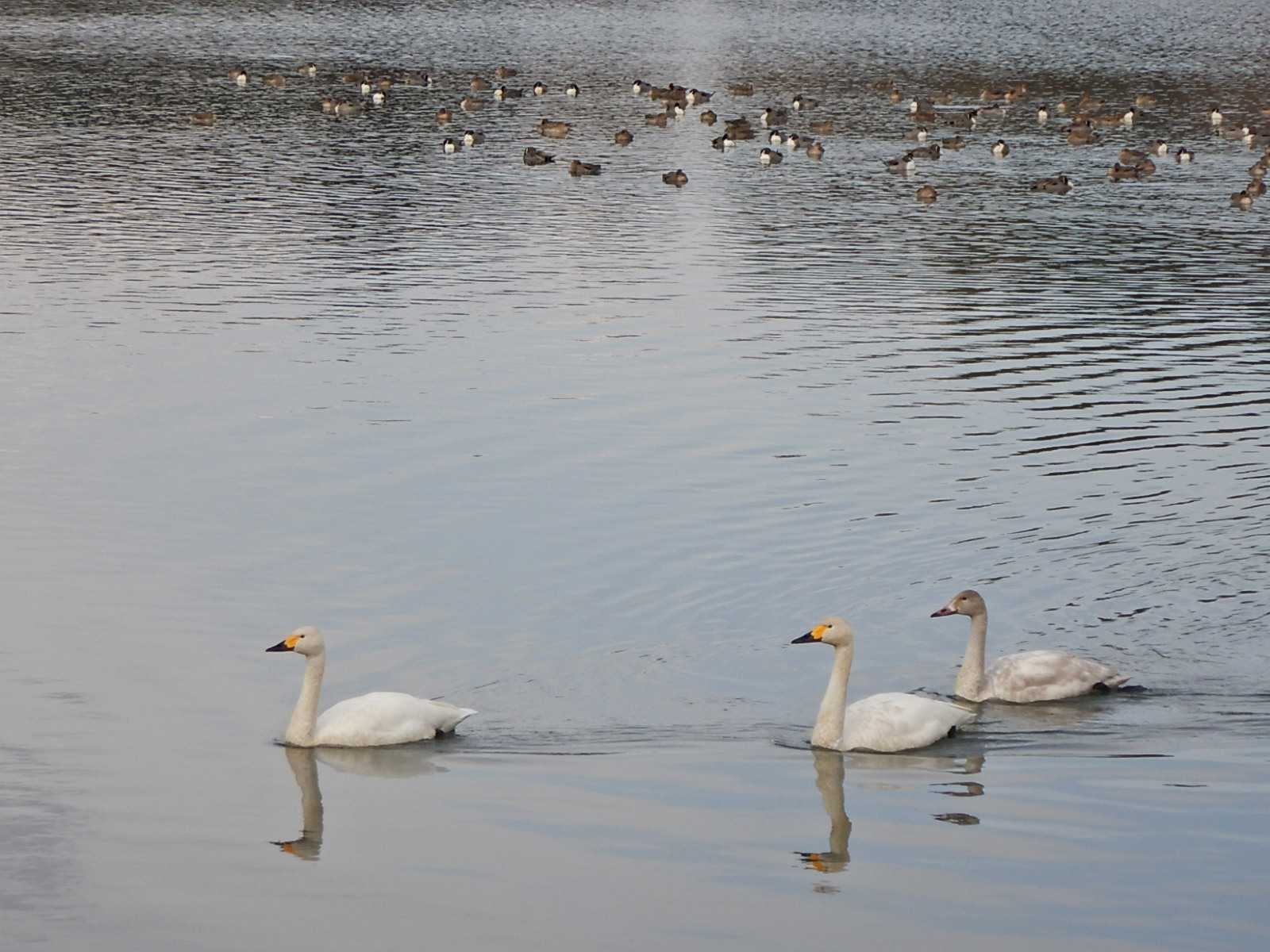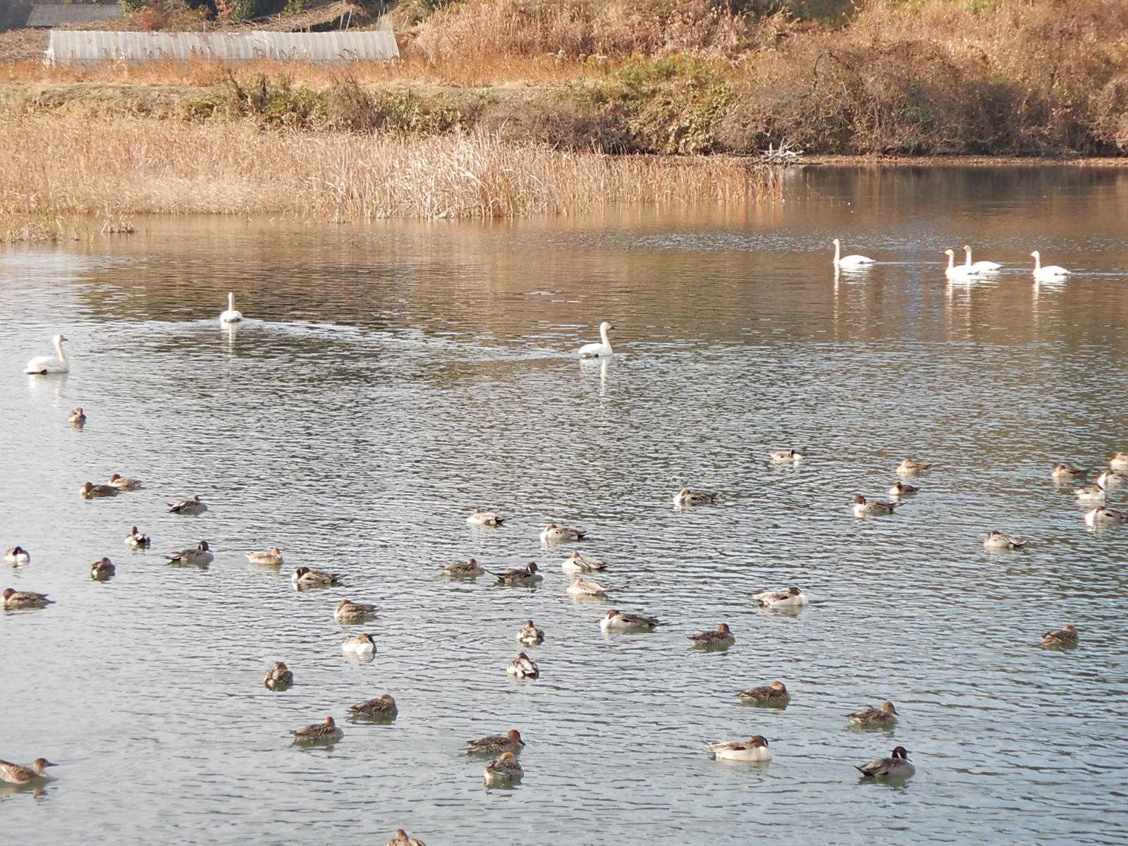 数えてみたら白鳥は10羽くらい、カモは100羽もいないでしょう。