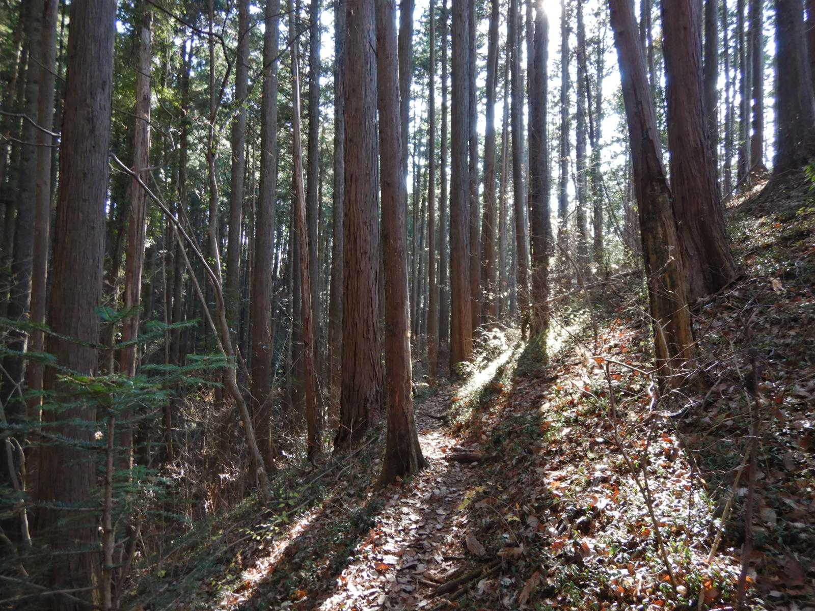 雨は強くなってきましたが、檜の植林の中なのであまり濡れませんでした。