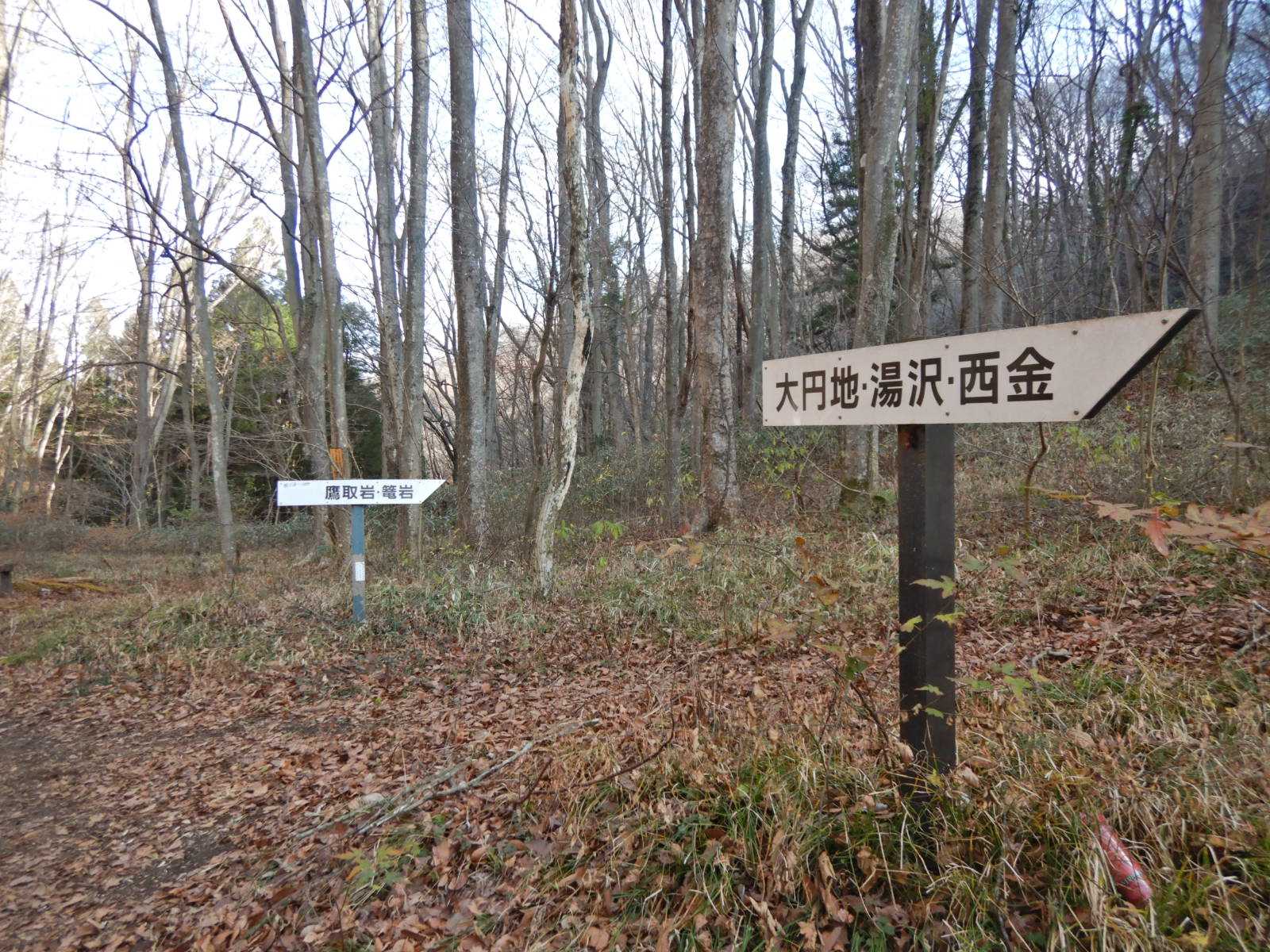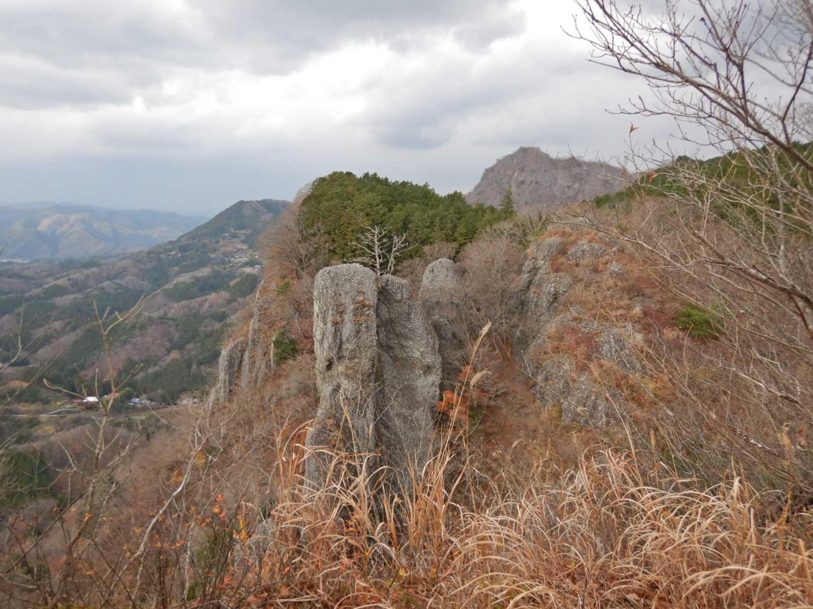 歩き始めから2時間半、入道岩や鷹取岩の見えるフジイ越に着きました。ここは古分屋敷からの道があります。