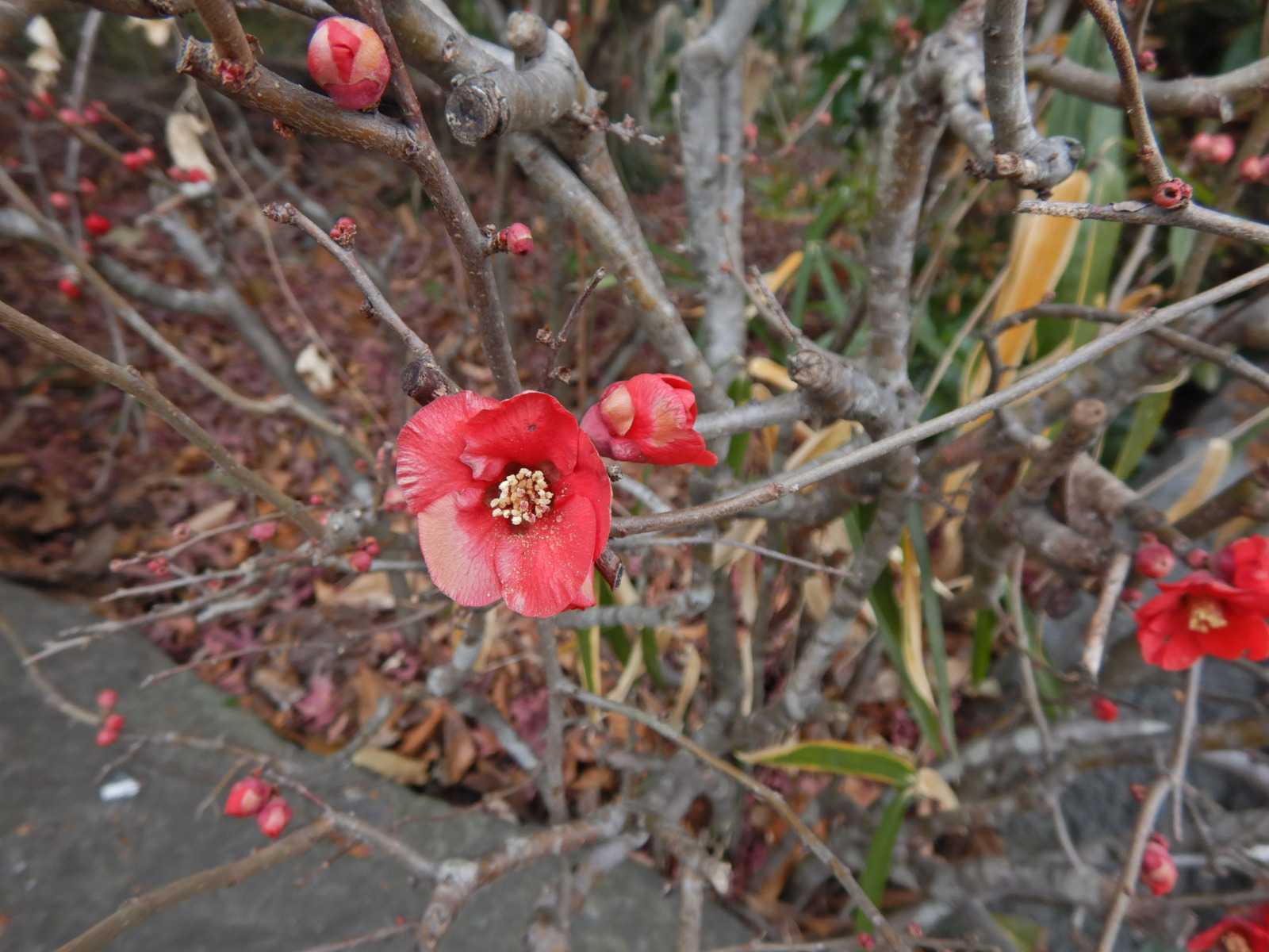 ボケの花が咲き始めました。
