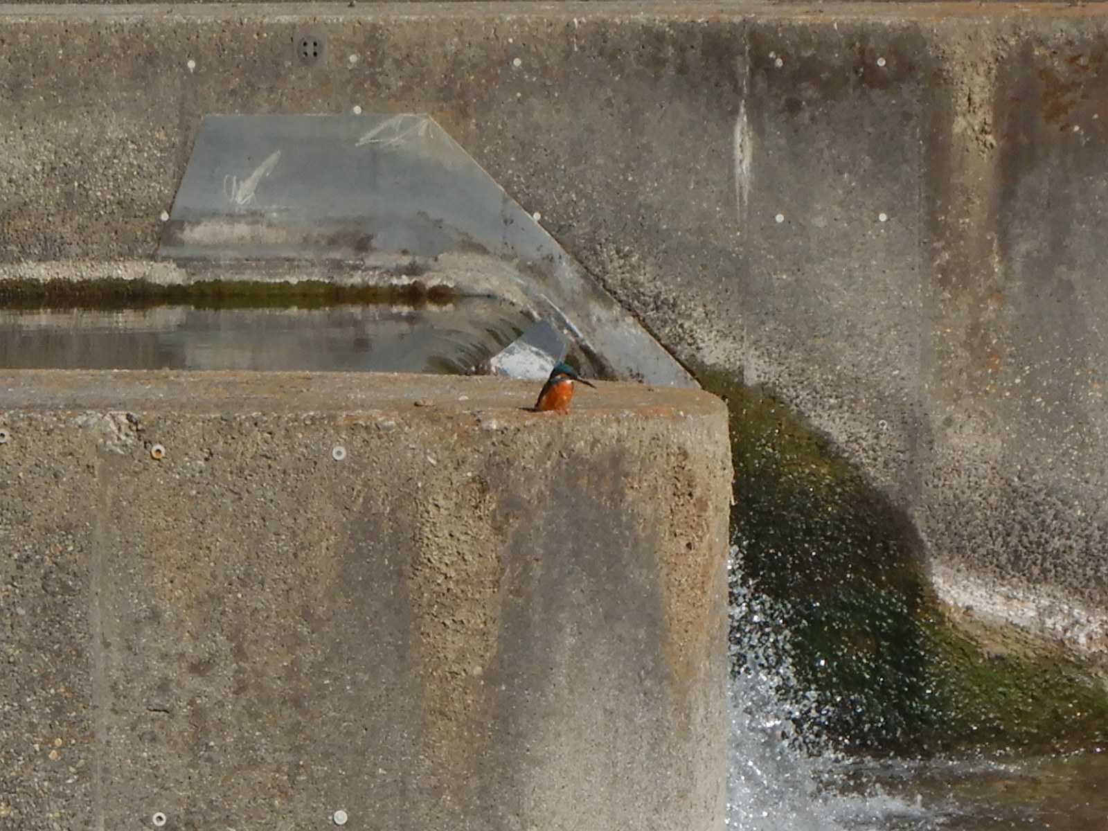 河川敷をジョギングやウオーキングする人がいるので堰の真ん中あたりにとまっていました。