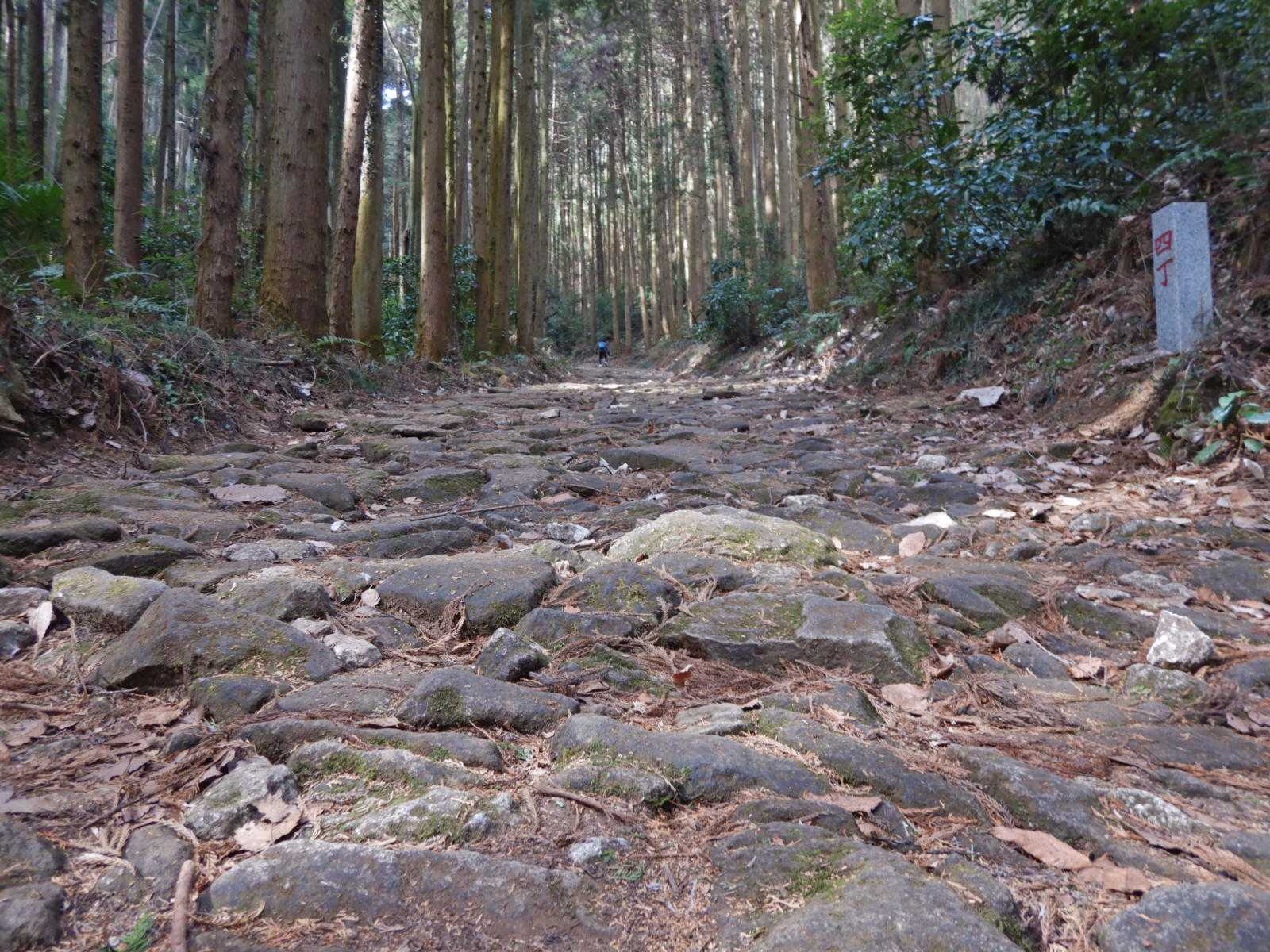 四丁からは石畳となりここからが登り坂、石畳といってもデコボコで歩きにくいのですが、神社の参道にしては良く作られています。