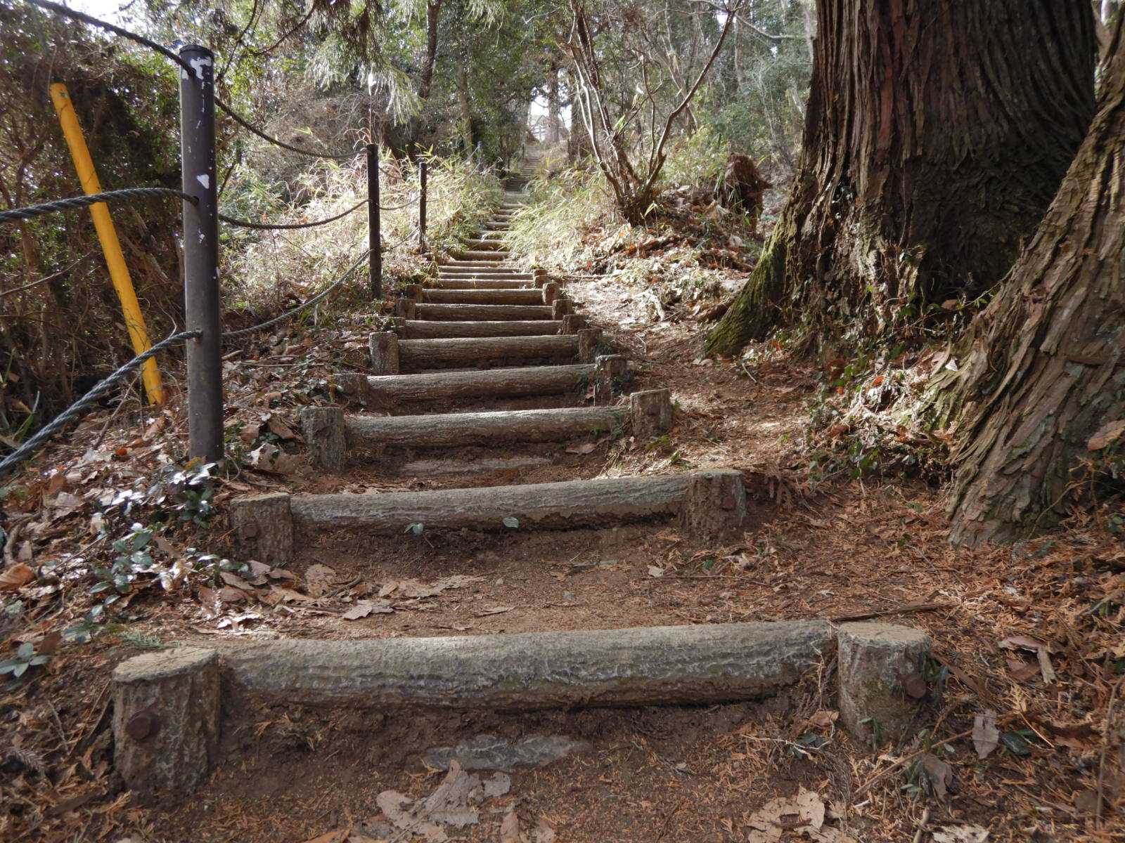 十丁を過ぎて車道を横切るとカラッソ坂、坂の左側に作られた174段の階段を登ります。ここが一番傾斜がきついところです。