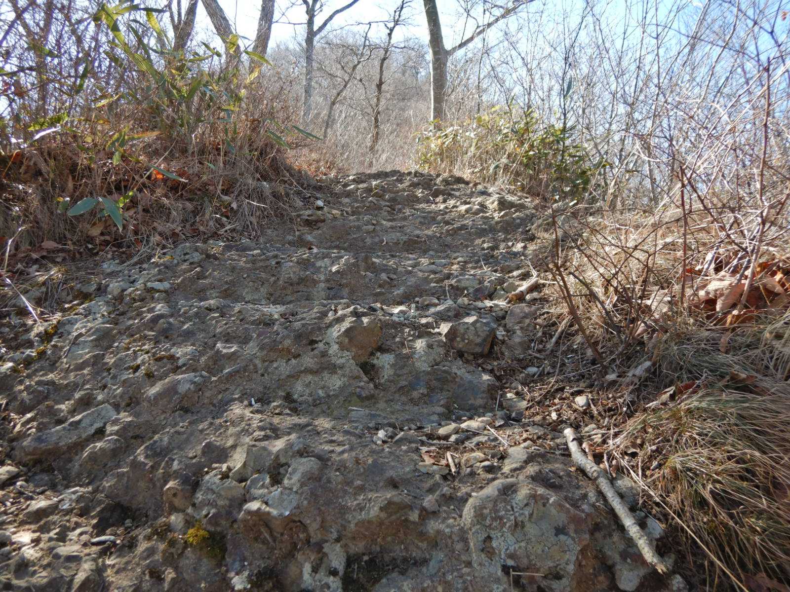 所々に現れる角礫変成岩という露岩にはステップが作られています。