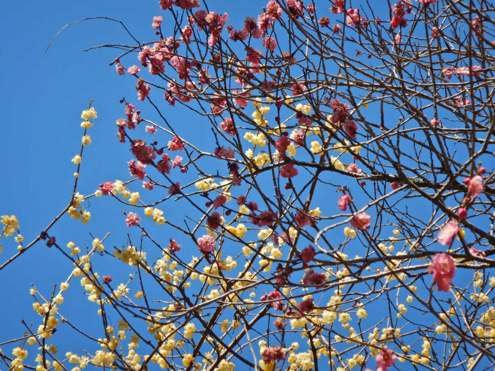 ロウバイと紅梅が隣り合わせでした。