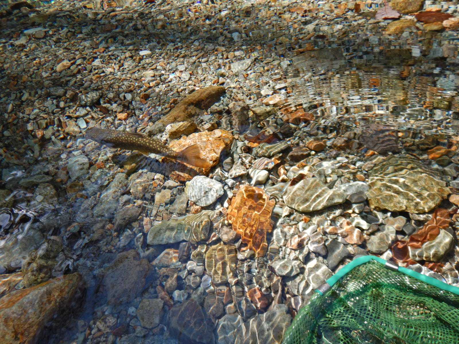 水温が低いせいもありますが、この沢のイワナは黒っぽい色をしています。