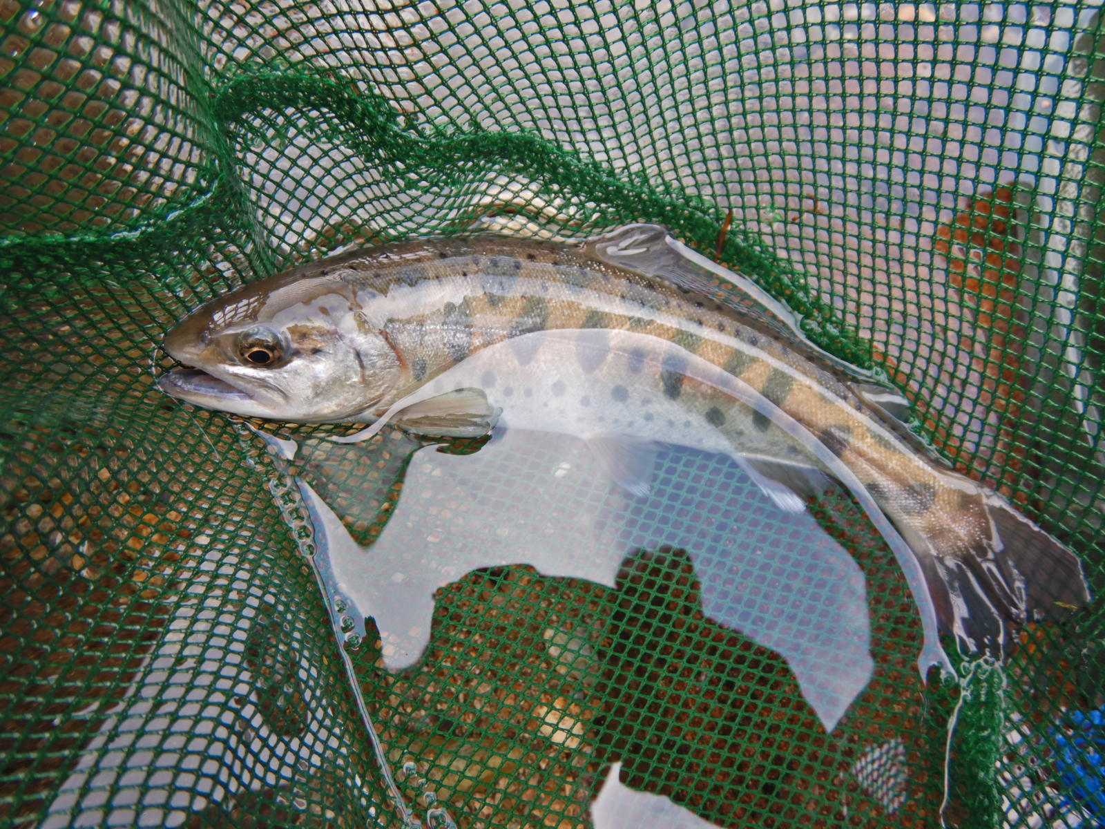 久々に魚籠に入れるサイズのヤマメです。