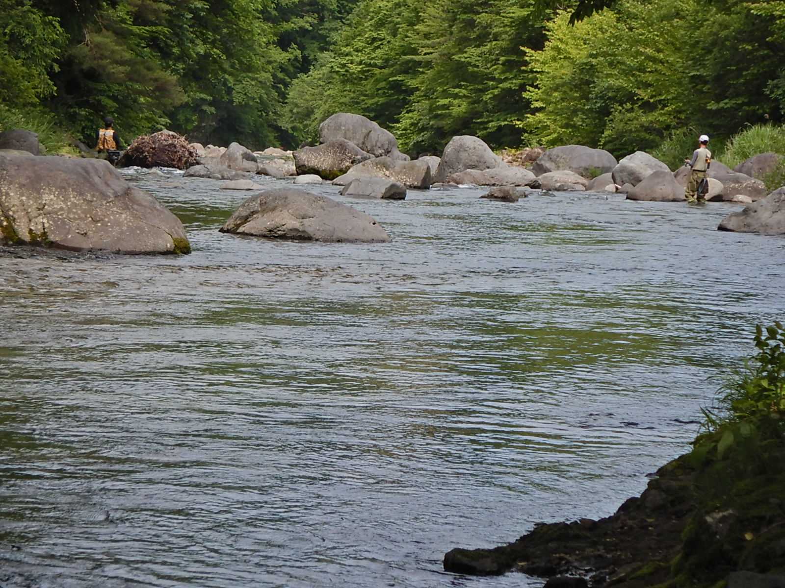 一人が川からあがって来たので釣果を聞いてみるとゼロだそうです。ブナ虫で早速釣り始めました。