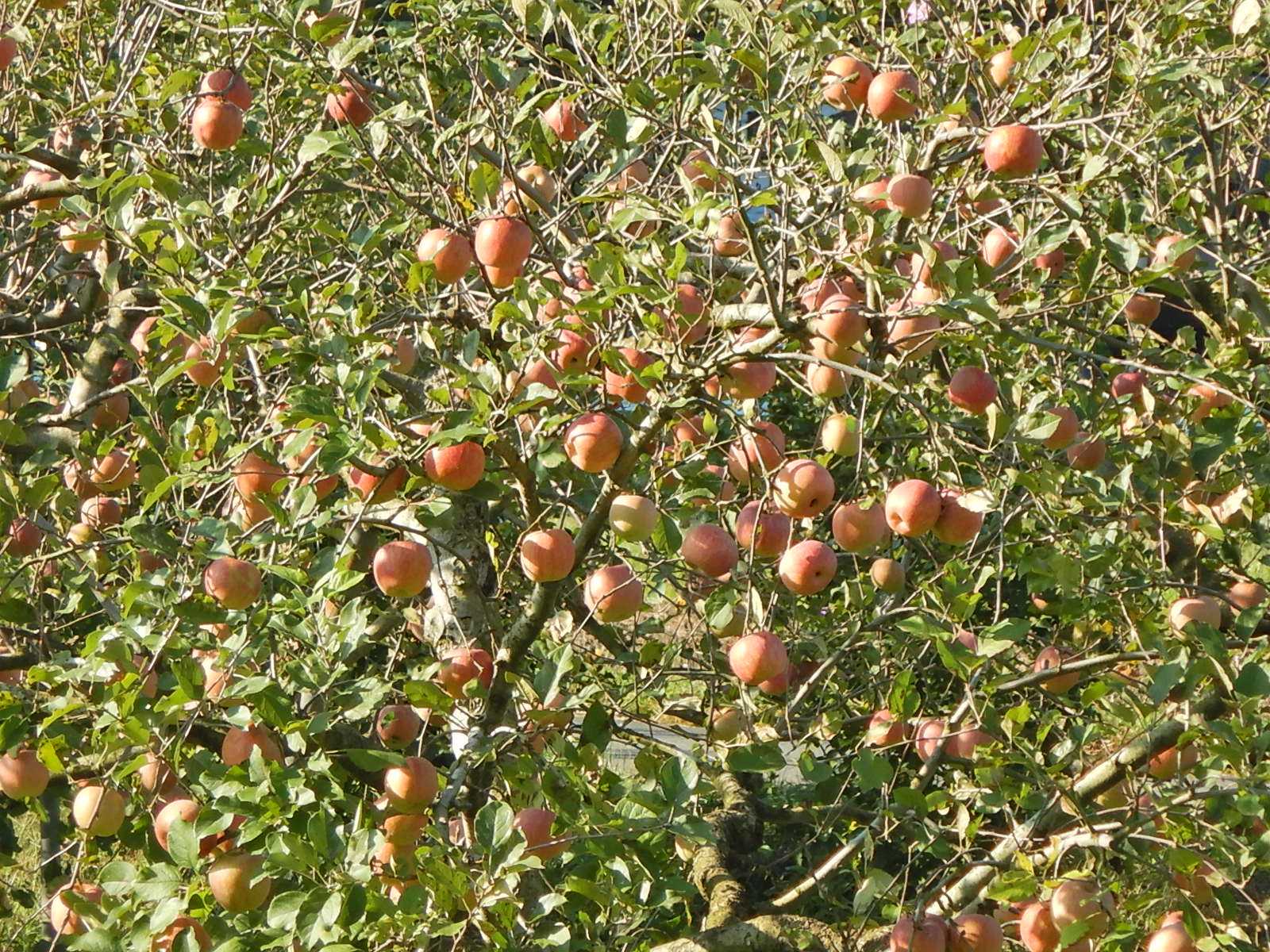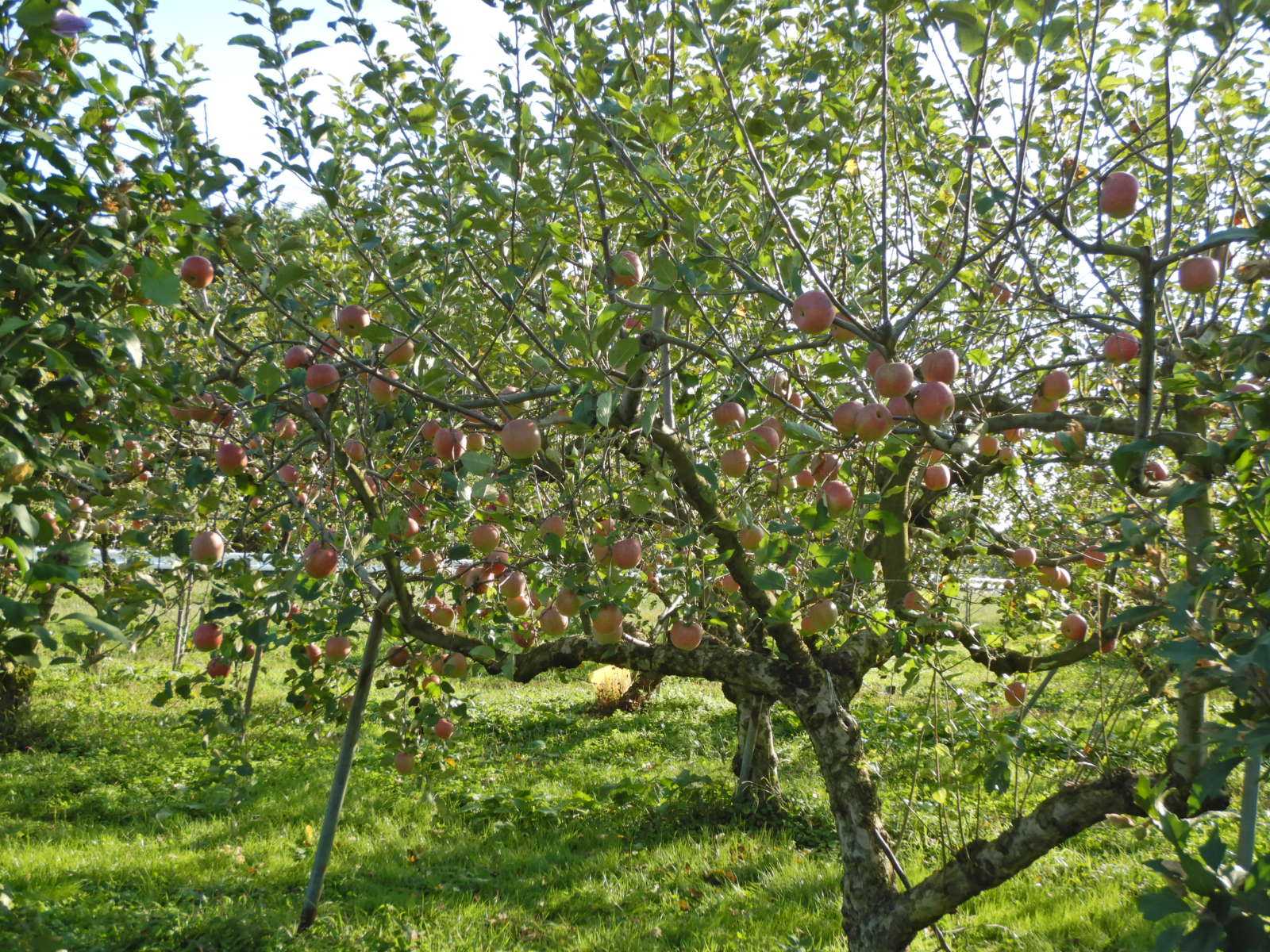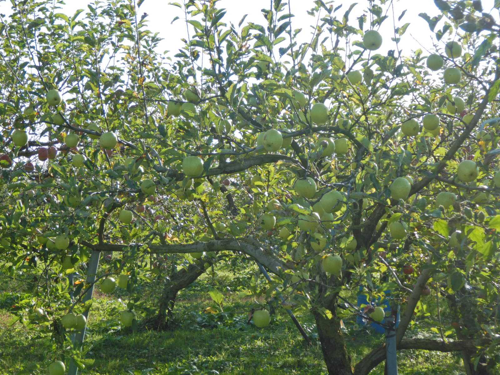 一見してどちらを見ているのか分かりにくいと思いますが、リンゴ畑を見てうつ向いているのではなくて、こちら側の斜め上を見ているのです。