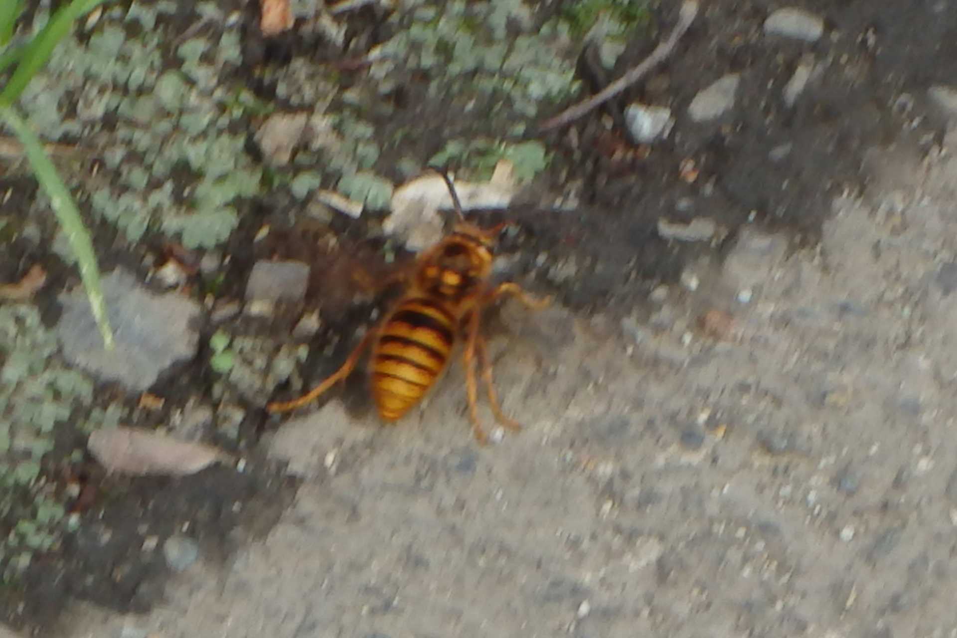 強風で落ちてしまったのかスズメバチが地面を歩き回っていました。