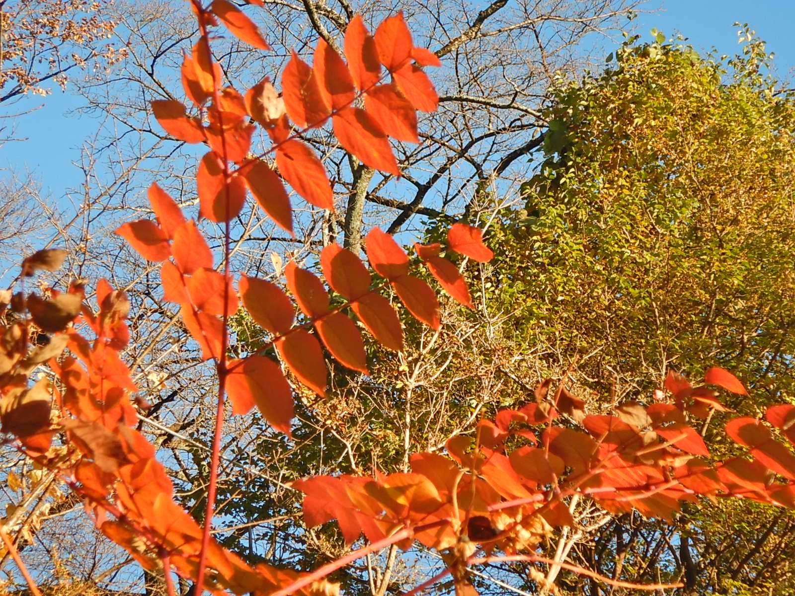 紅葉は山を降りて標高500メートル近くまで降りて来たようですが、平地でも木によっては色づき始めています。