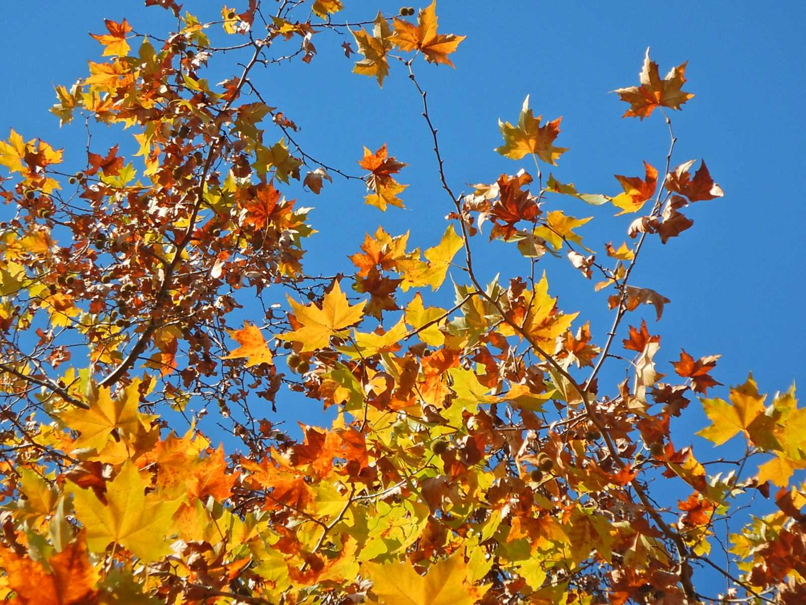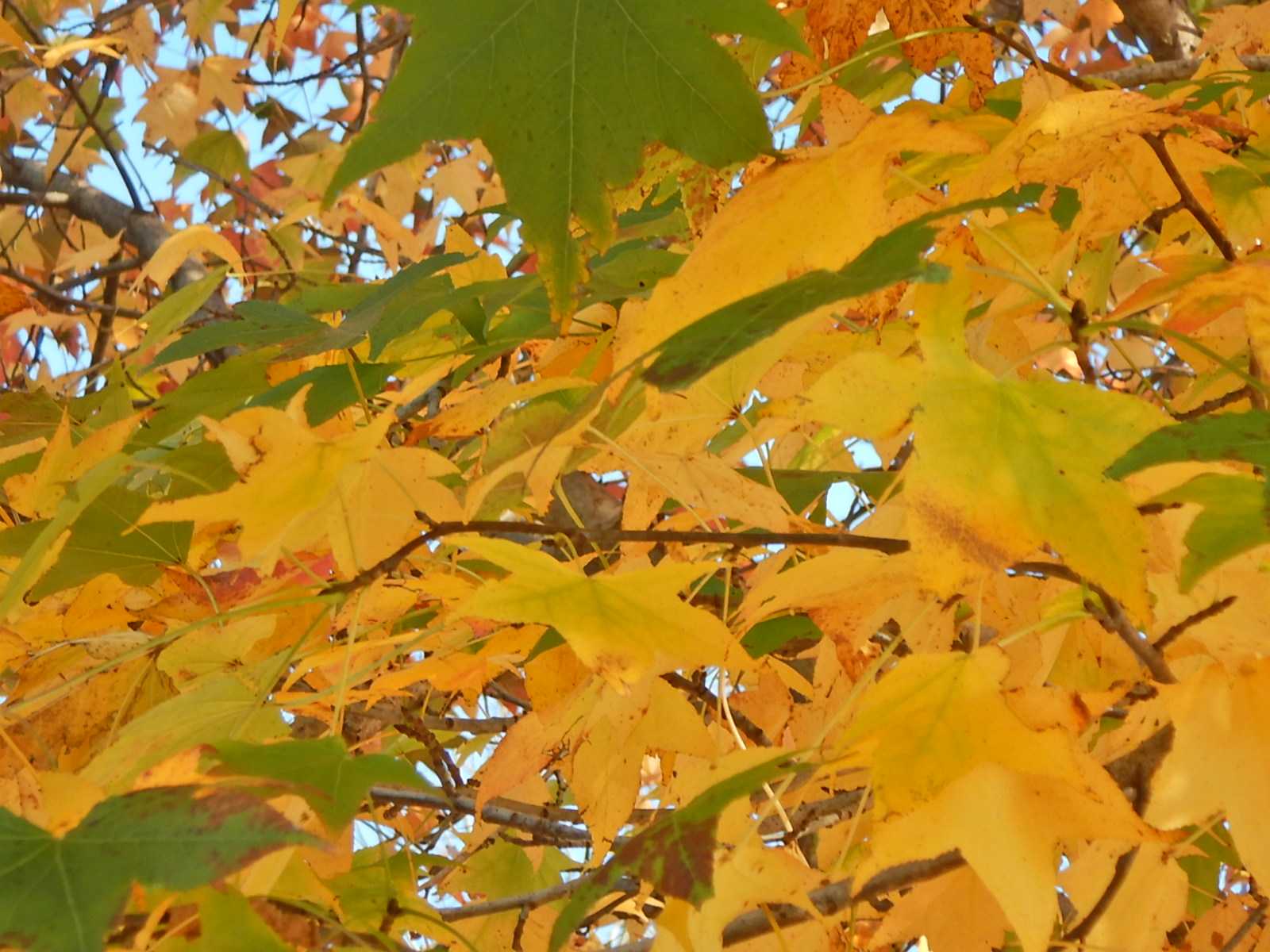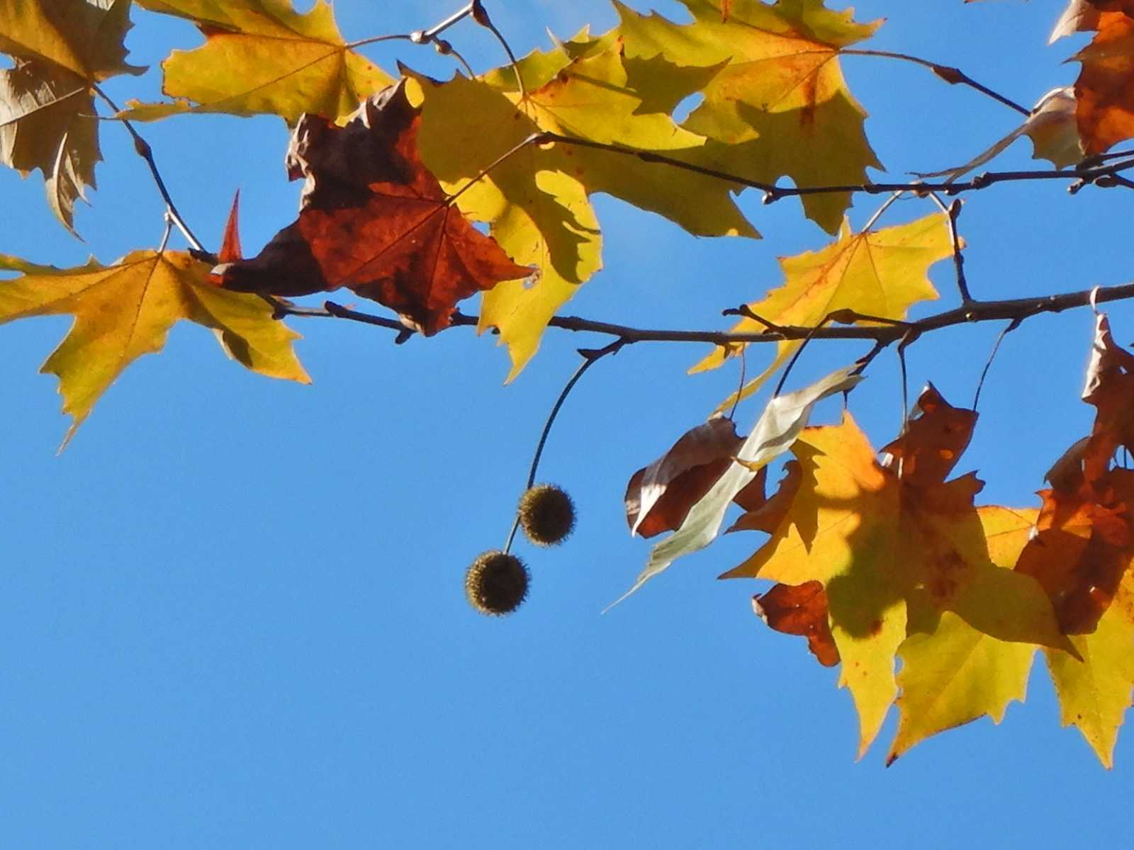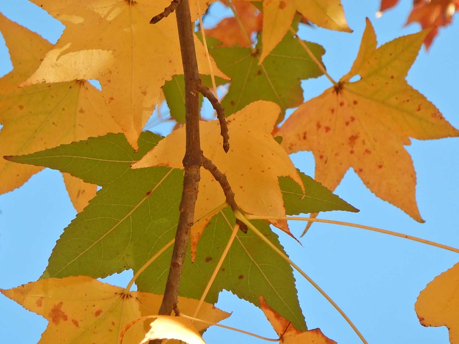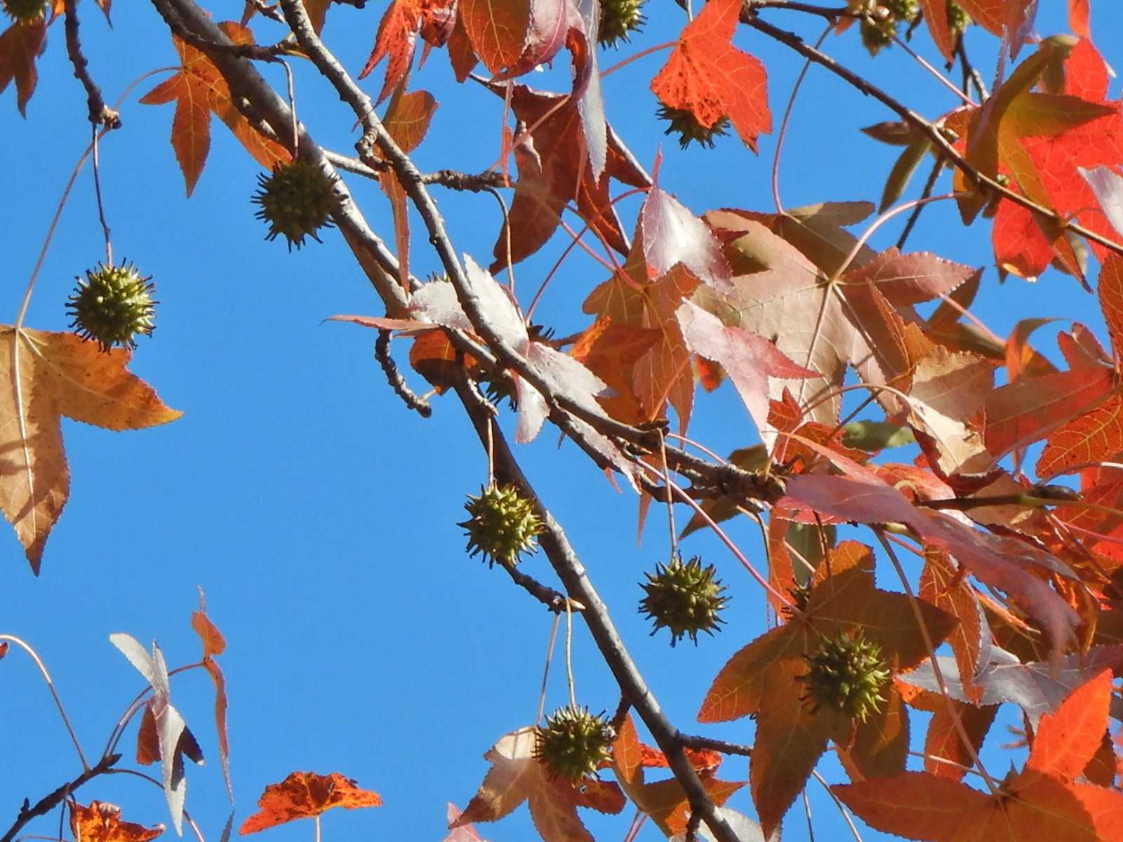 ここではモミジバフウの紅葉のピークは過ぎました。