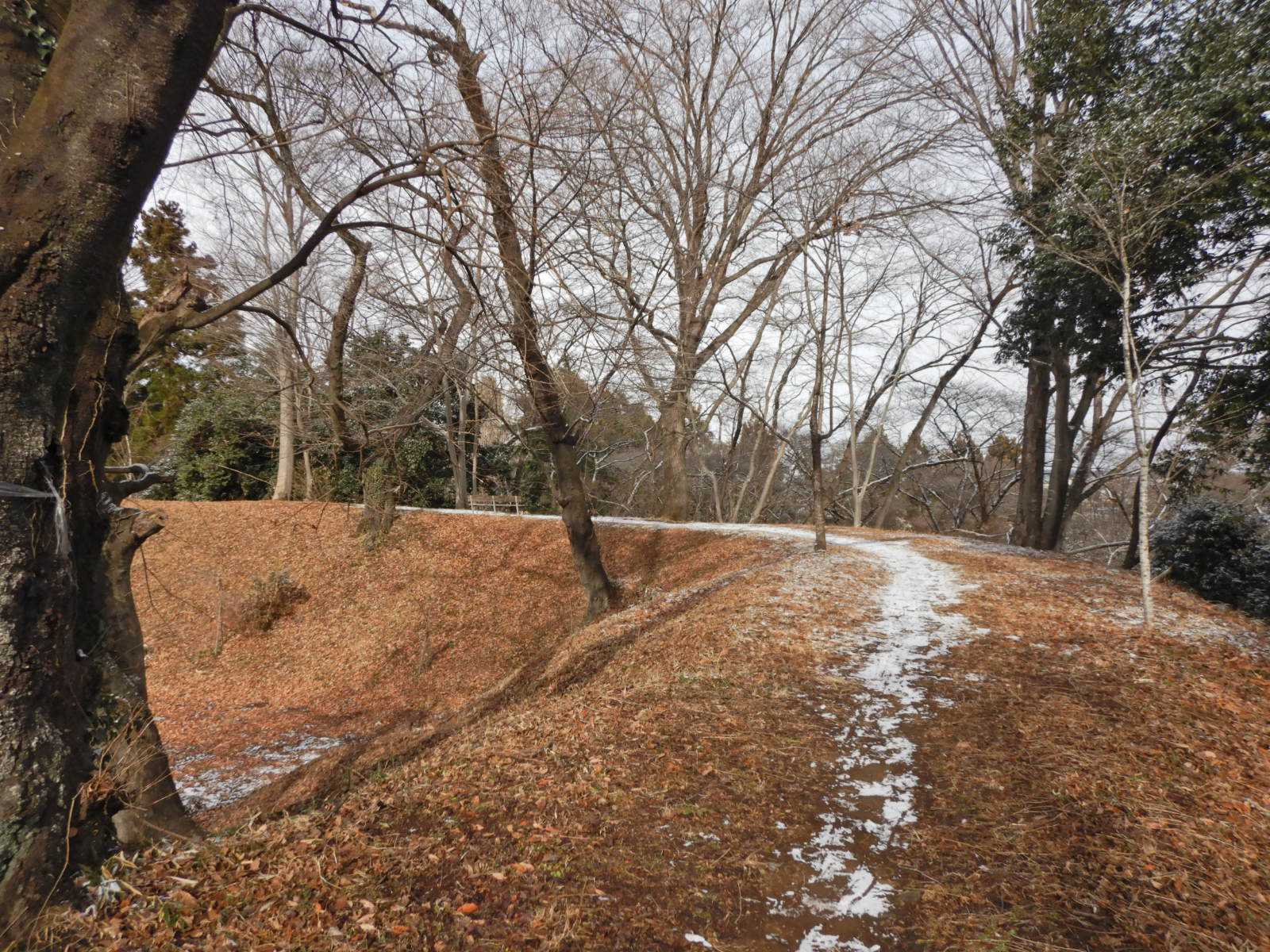 日陰に多少の雪はありますが、滑りにくい靴を選んではいて来たので問題はありません。
