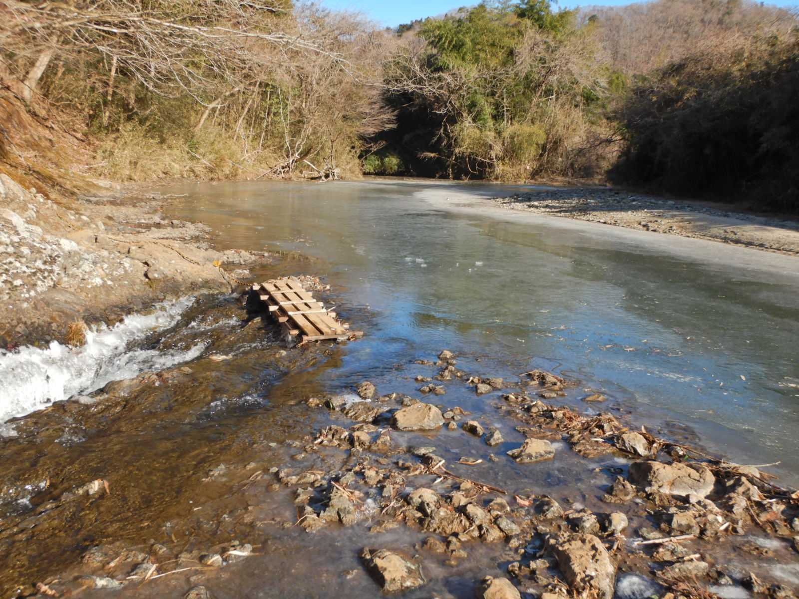 ほぼ凍結していて水の流れているところは僅かのようです。