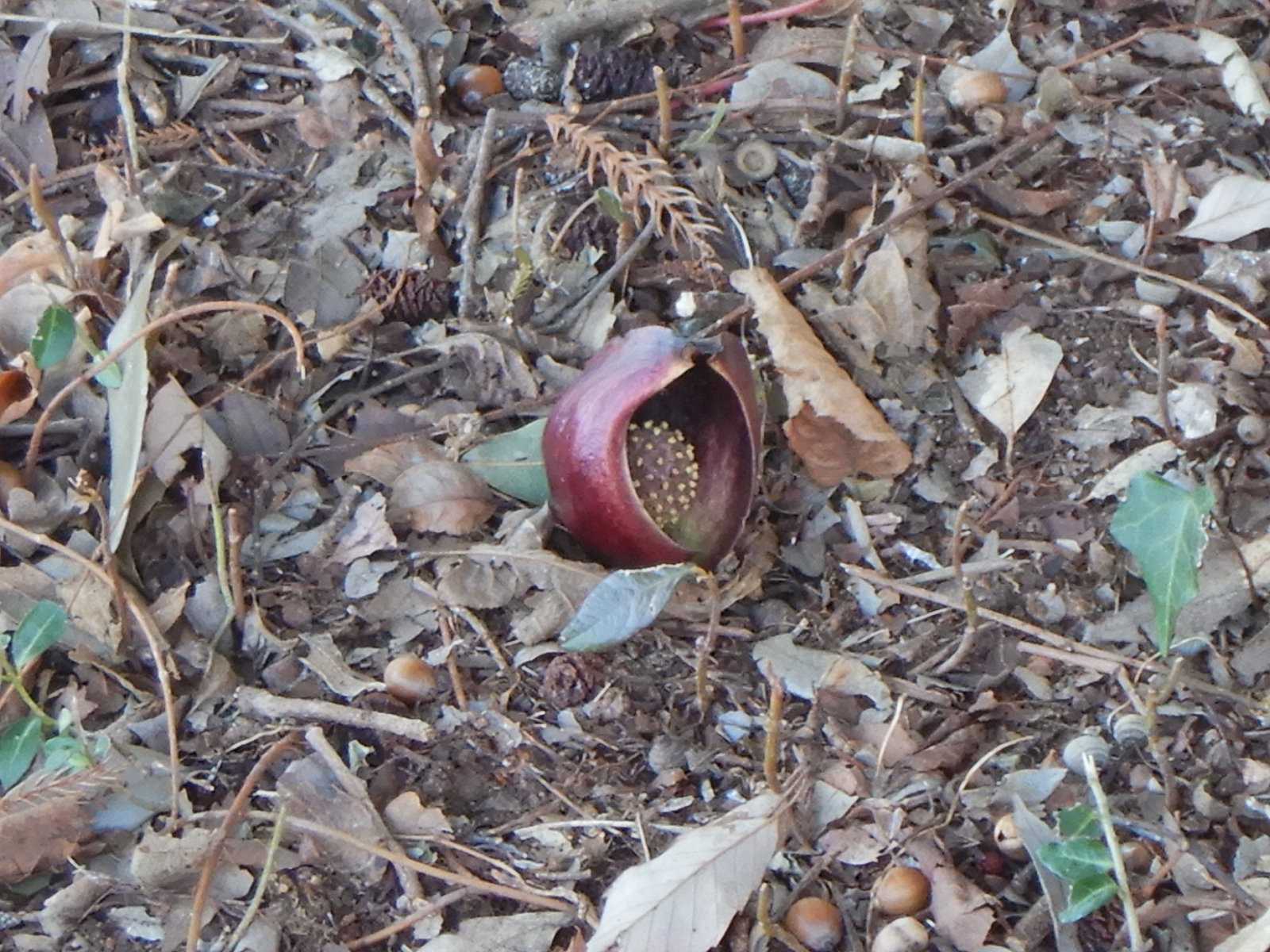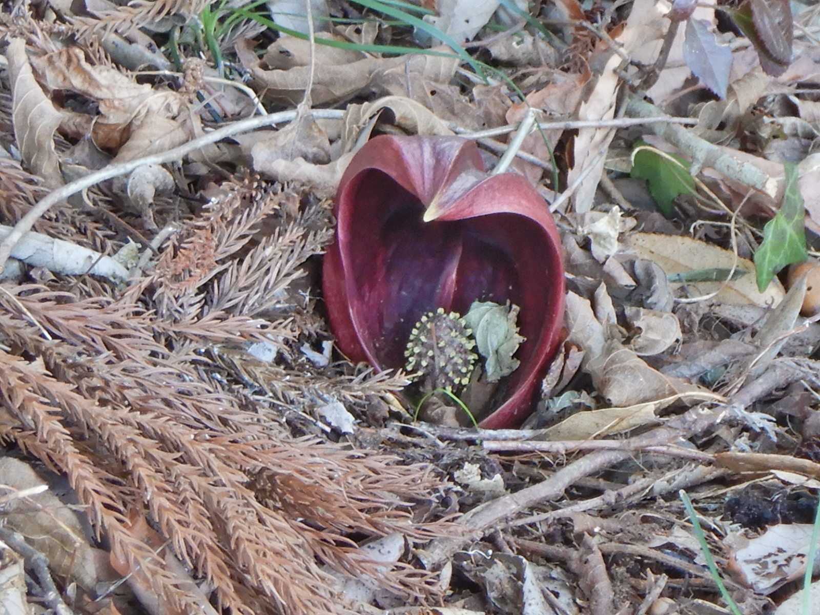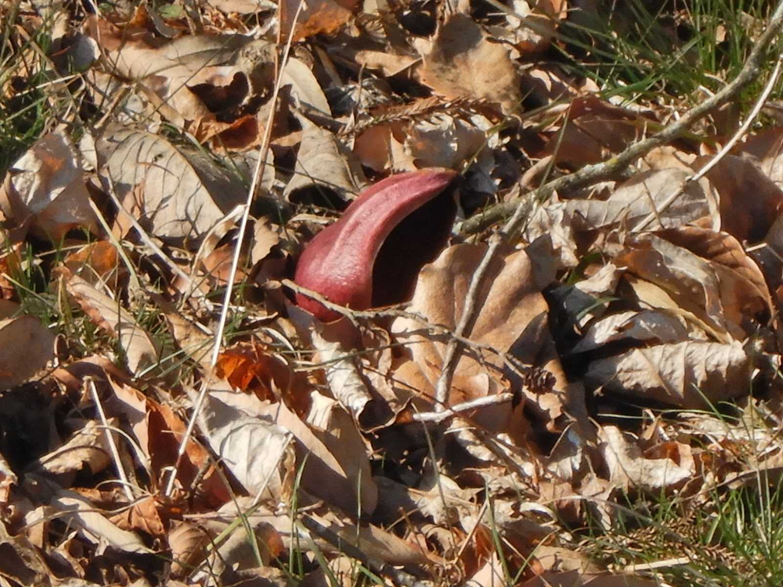こちらは苞の中に枯れ葉が入っていますが、これが一番ザゼンソウらしいようです。