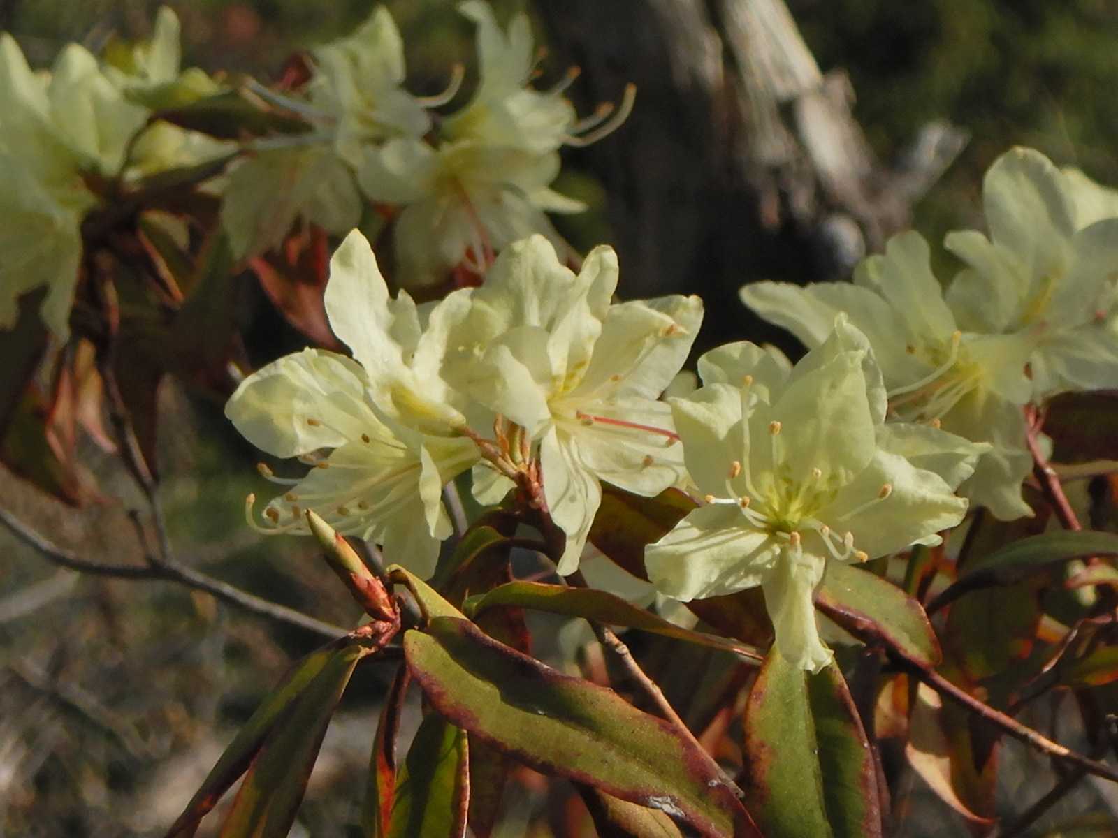 ヒノキの植林を過ぎるとヒカゲツツジが見えてきました。