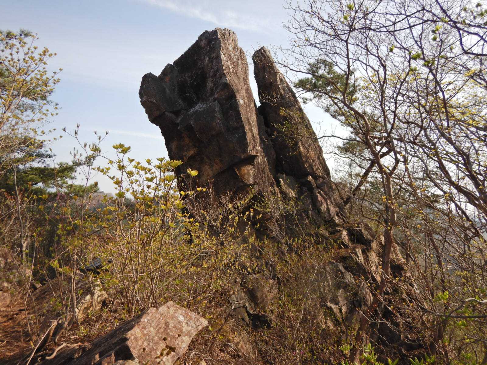 ヒカゲツツジとアカヤシオの咲く古賀志山の二枚岩