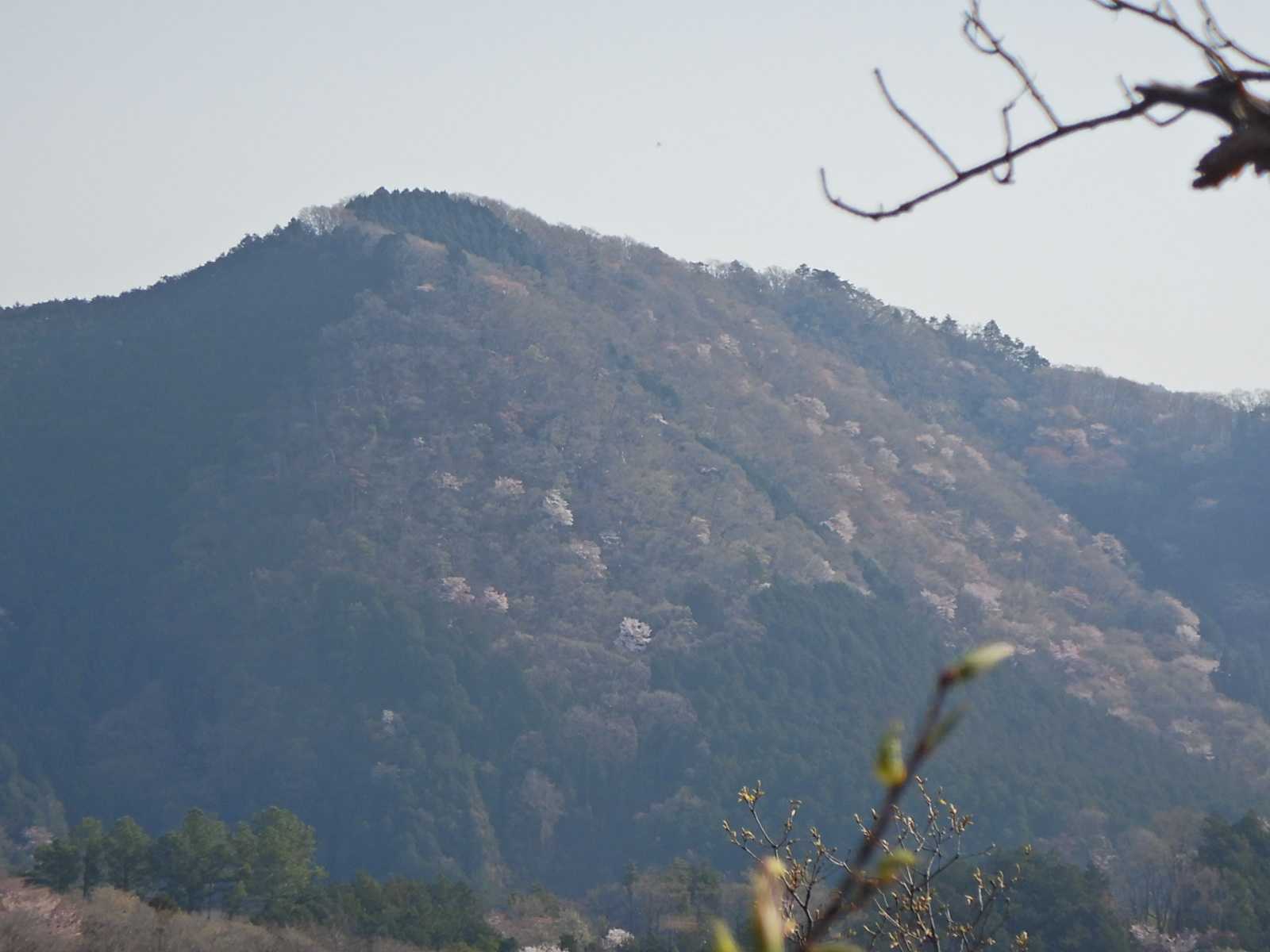 向かいの山に山桜がたくさん咲いています。