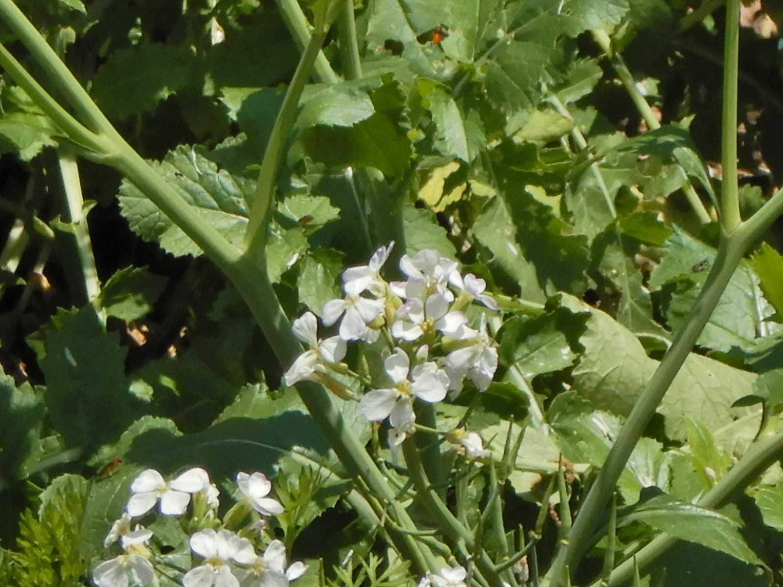 畑には収穫されなかった大根が白い花を咲かせていました。
