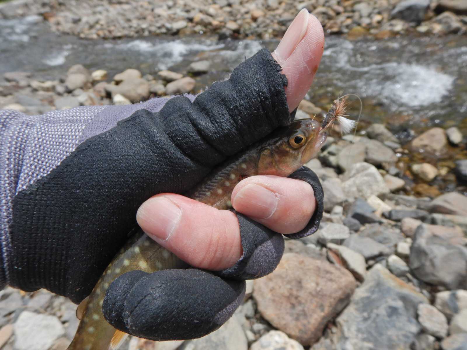 毛鉤釣りに変更です。チビイワナが2回続きました。
