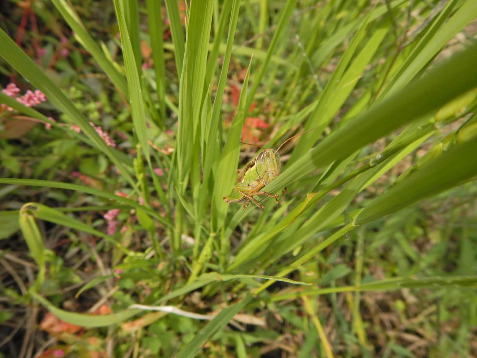 ひこばえにイナゴなのかバッタなのかが止まっていました。