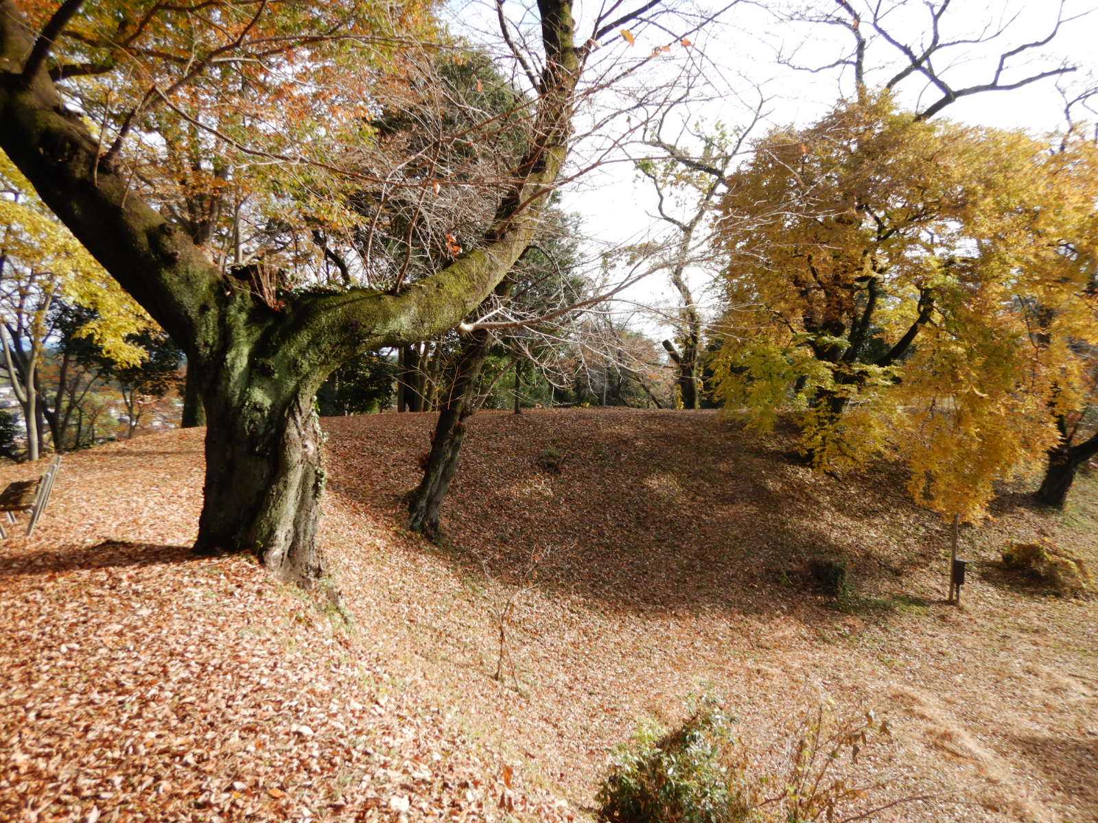 城山の土塁にもずいぶん落ち葉が積もりました。