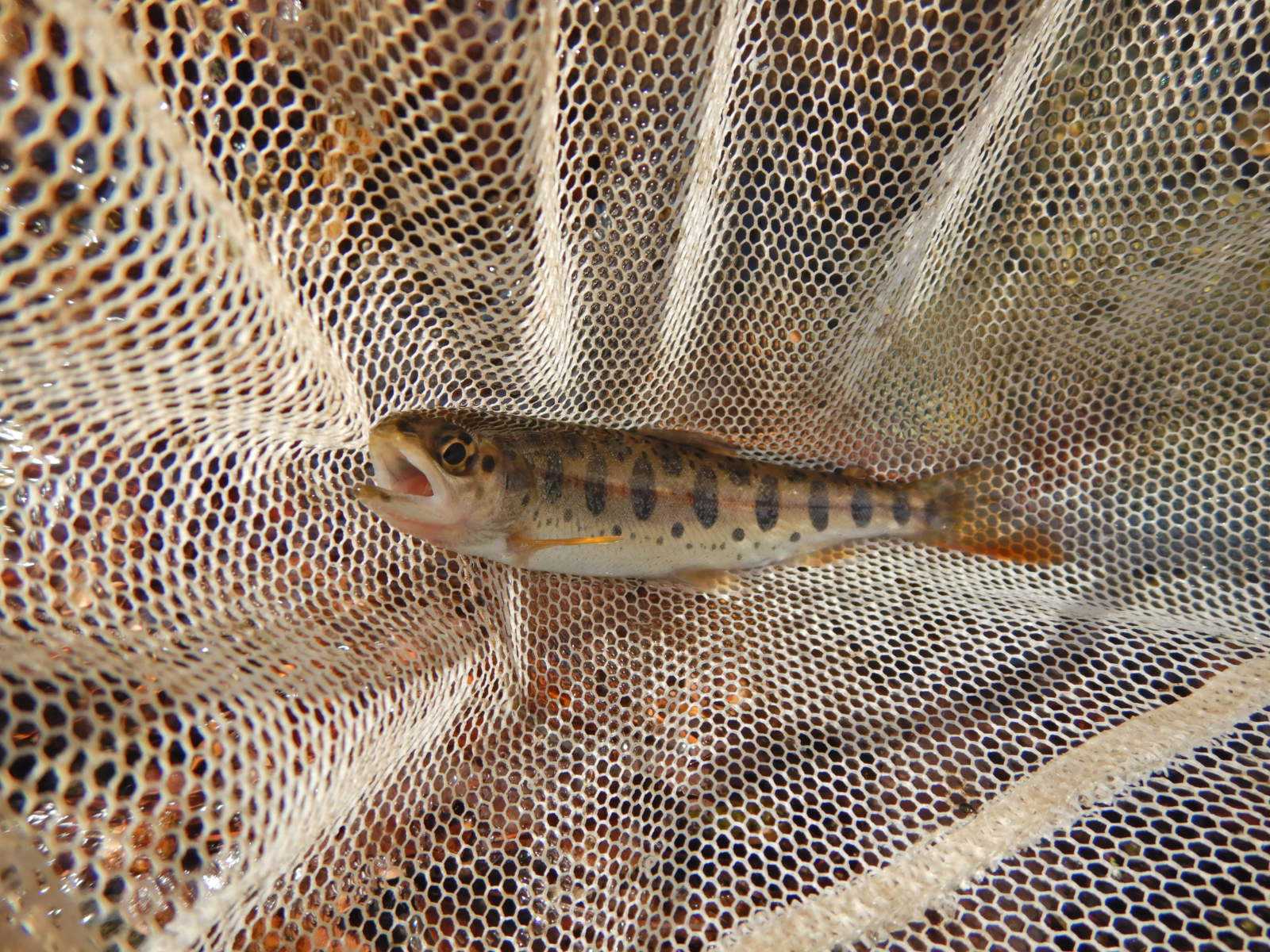 帰ろうかと思っていると、18㎝くらいのヤマメが掛かりました。