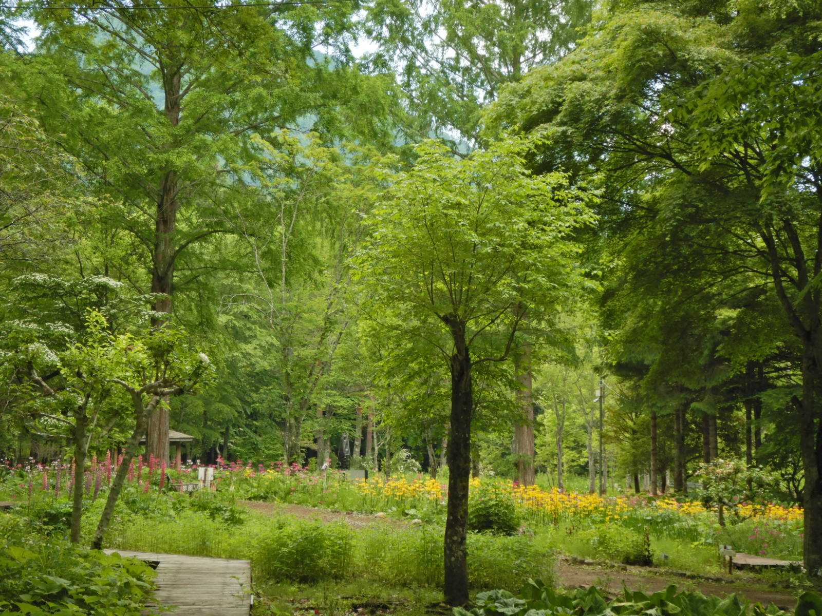 男鹿川と山の間の植物園に心地よい風が吹いていました。