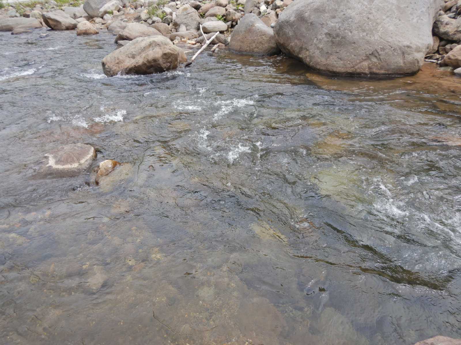 水位は低いままで川底は汚れていました。