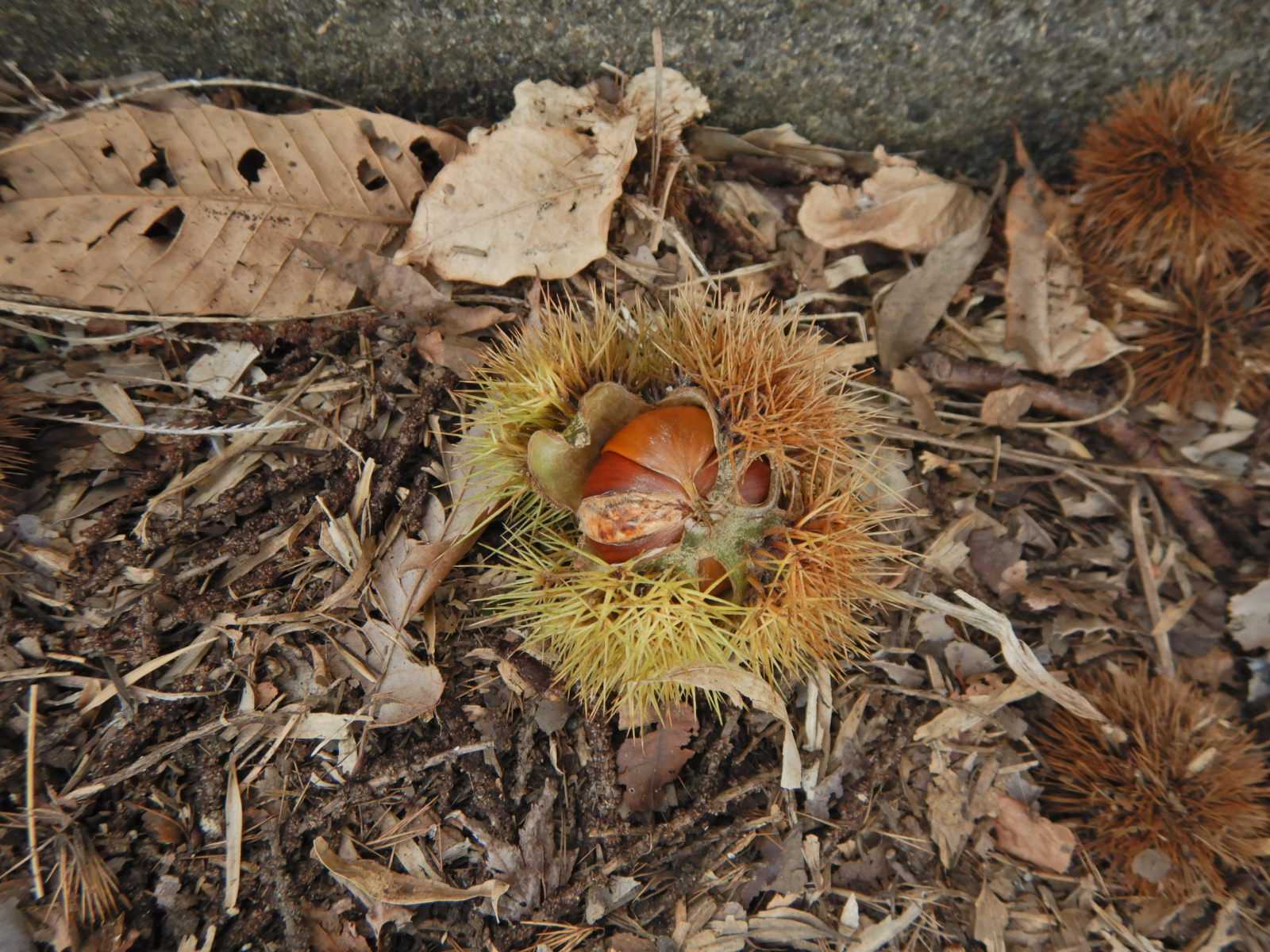 川の方に歩いていくと、ガードレールの下に丸くて白いキノコを見つけました。