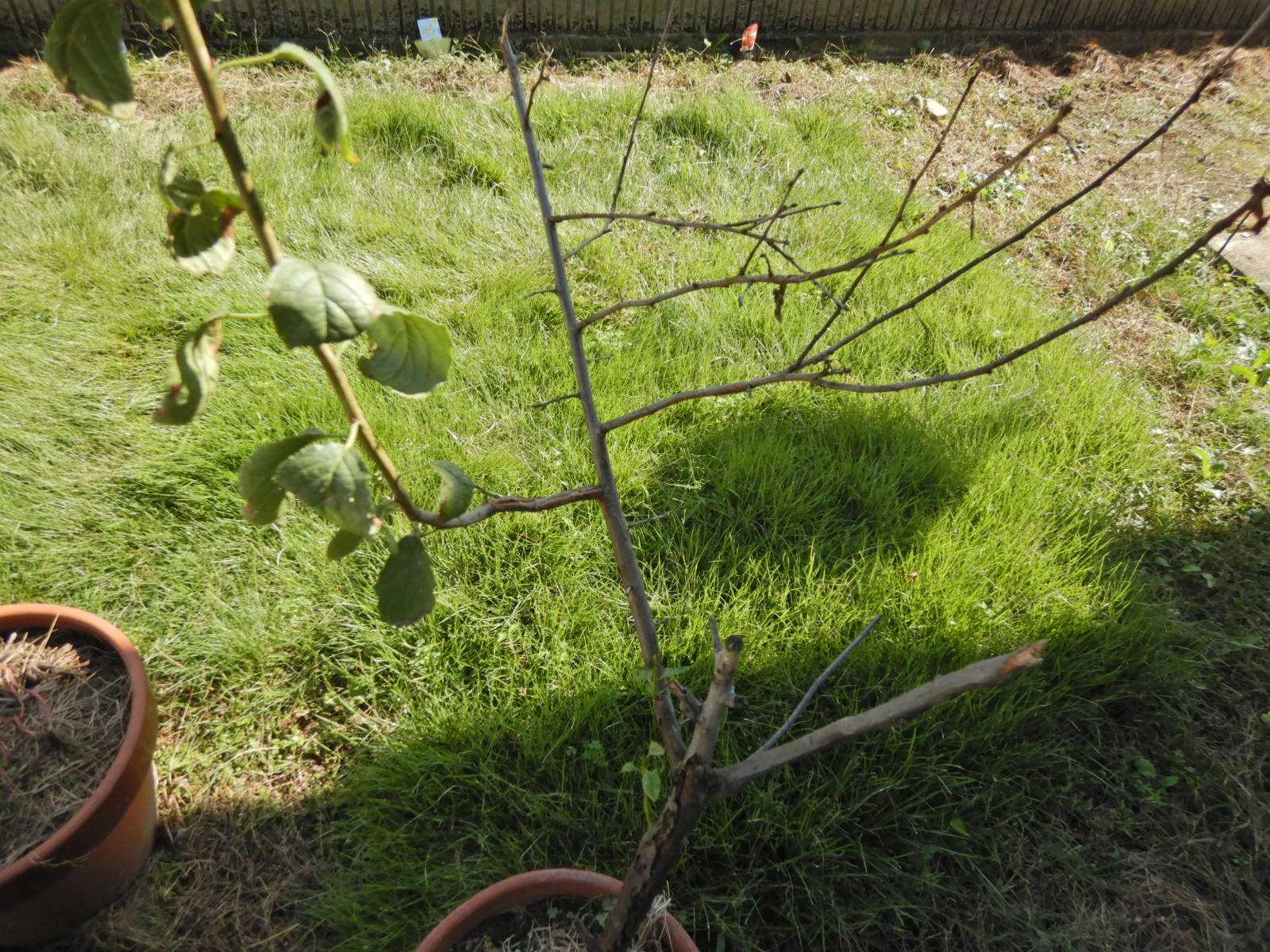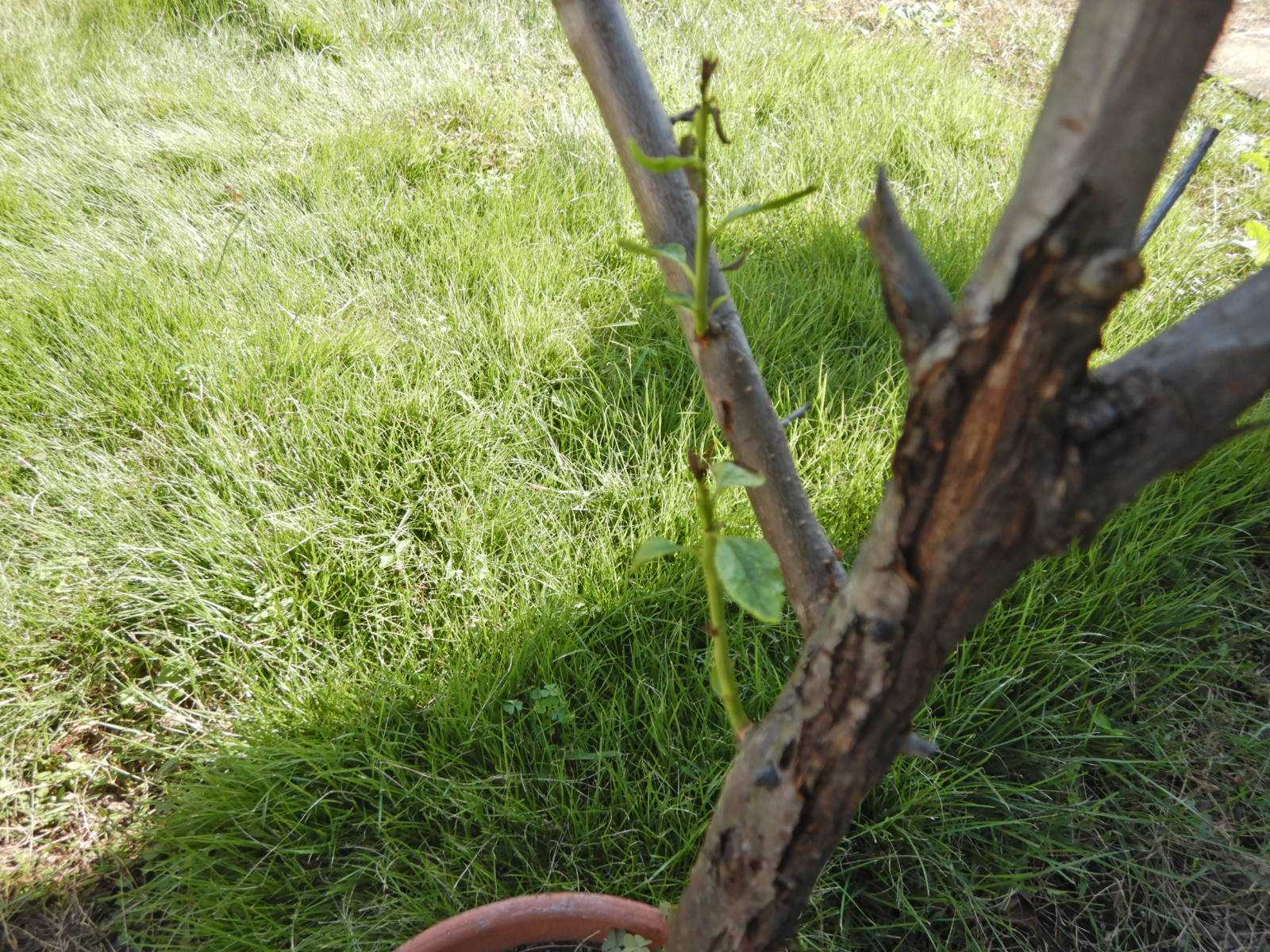 暑さで枯れたプルーンの枝ですが、新たに新しい枝がでてきました。