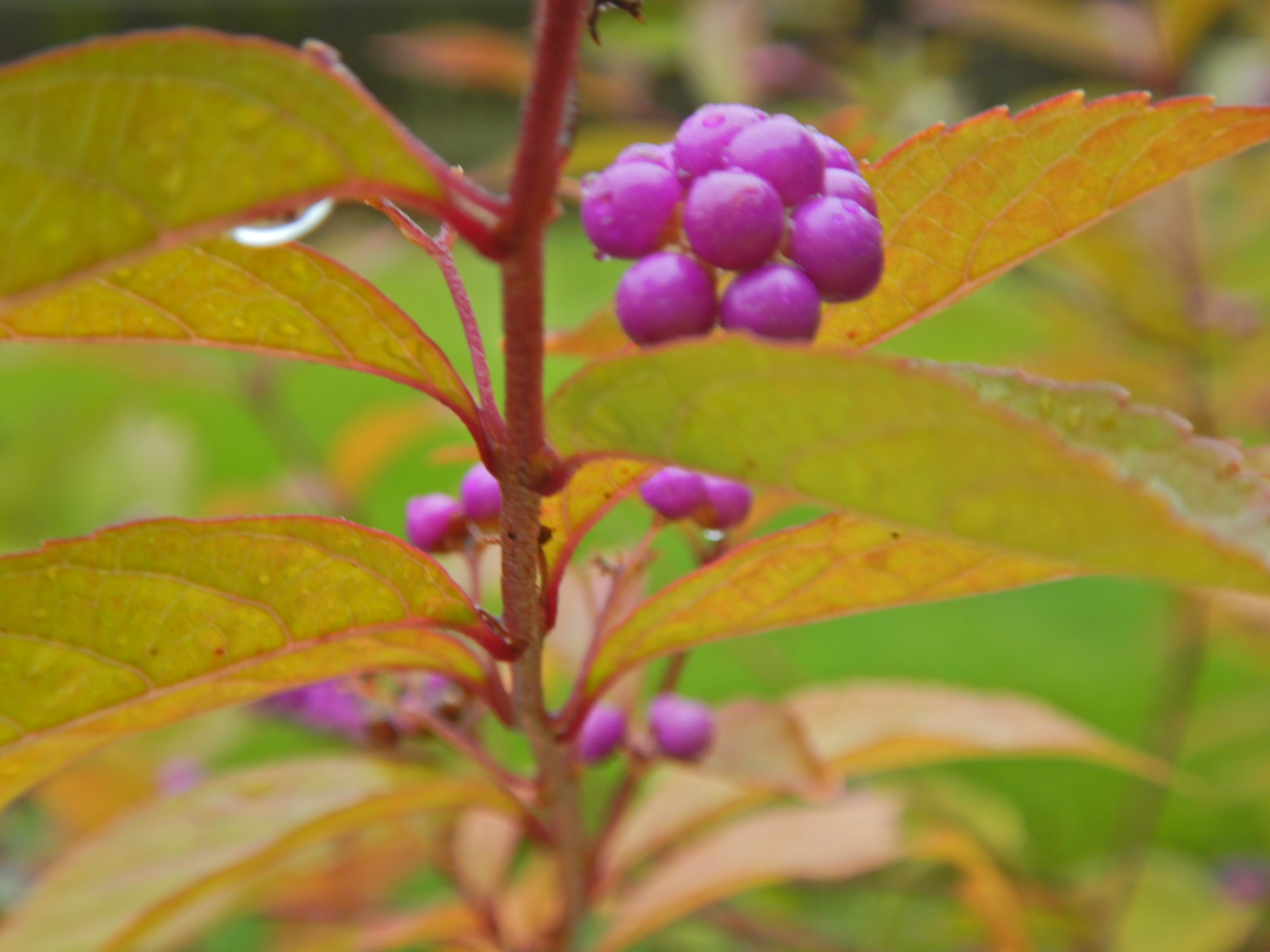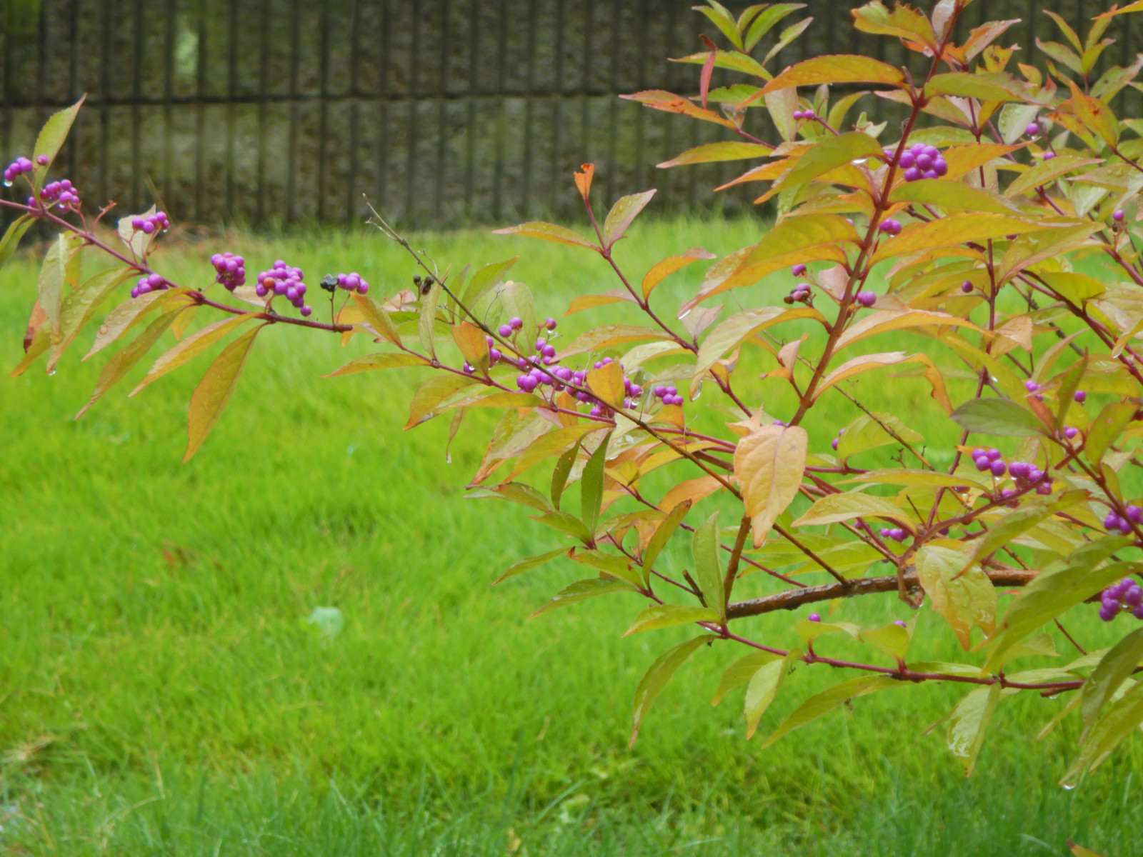 葉はいくらか色づいてきましたが、夏の猛暑の影響を受けたのか紫の実の数は少ないようです。