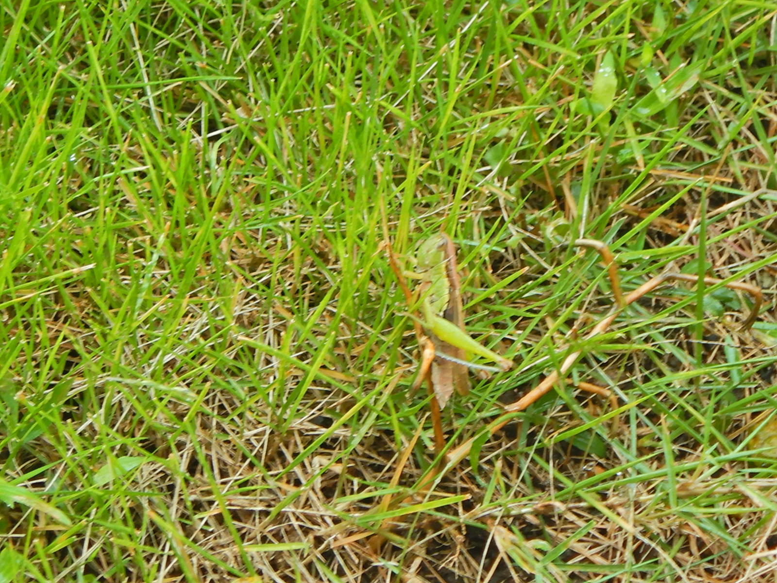 芝生にバッタ、 雨の日のアマガエルは何処にいるのでしょう。
