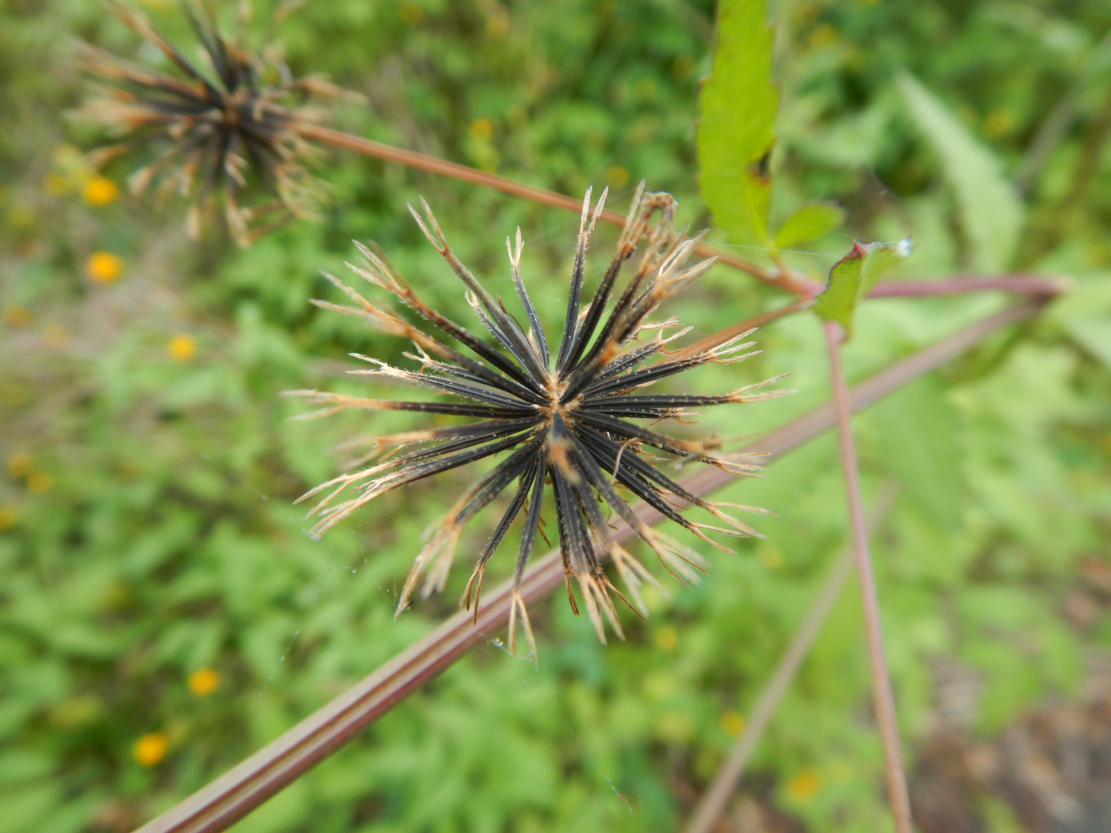 コセンダングサの種は人間の服や動物にひっつき運ばれる戦略をとっている植物です。